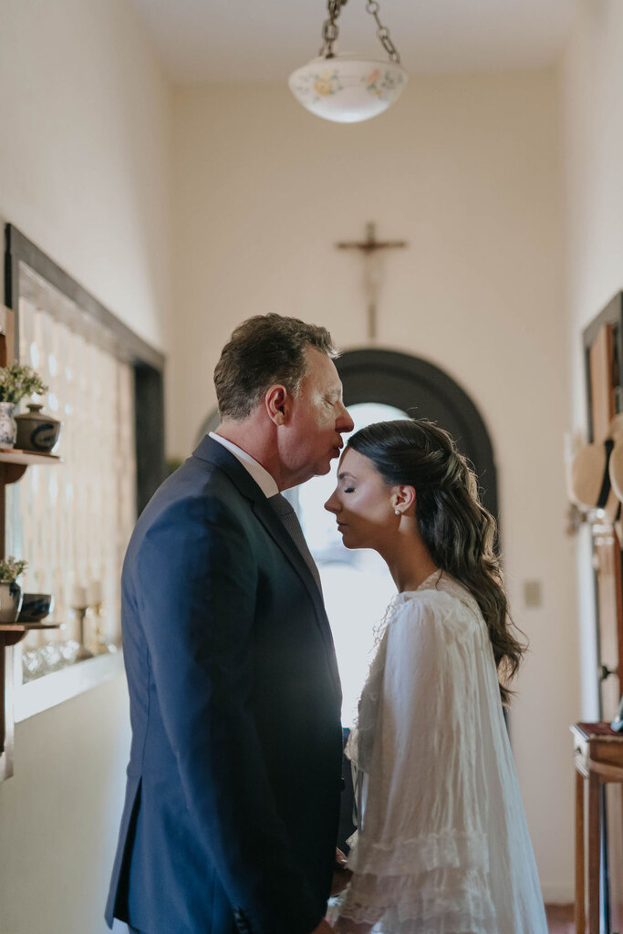noivo com terno azul e gravata azul serenity noiva ao lado do pai com terno azul
