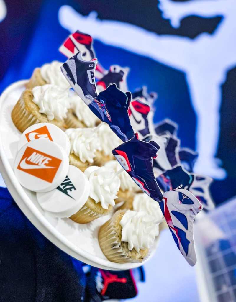 – Decoração com tema esportivo (basquete), que pode ser adaptada para o esporte preferido do noivo: