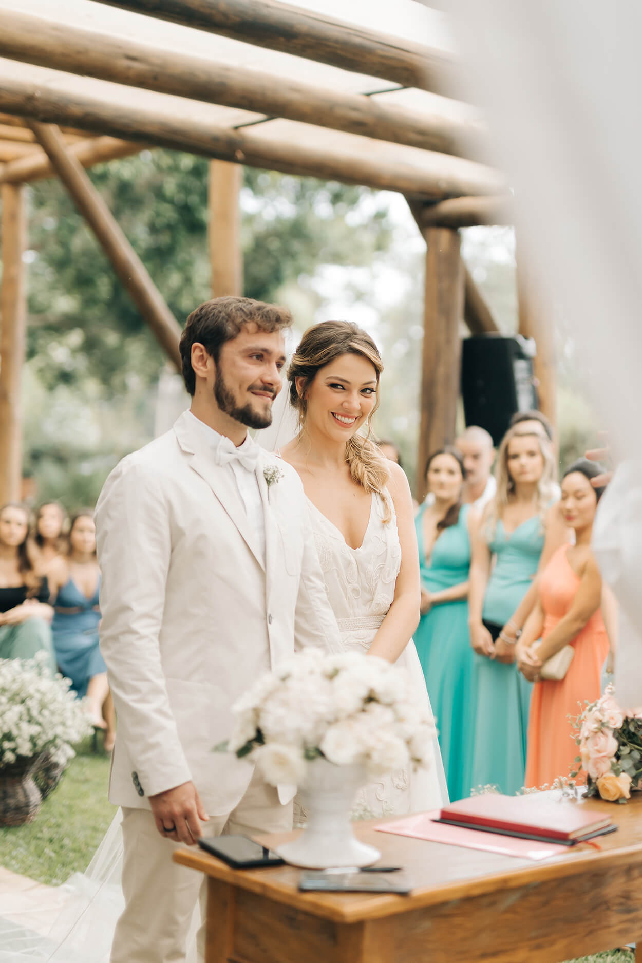 A Jordanna conta que quando estava no Brasil sentiu vontade de programar tudo para se casarem em fevereiro de 2022. Com uma decoração bem descontraída no estilo boho e um toque mais clean em tons de rosa, verde e creme, os dois celebraram o amor num cenário lindo no interior de São Paulo.