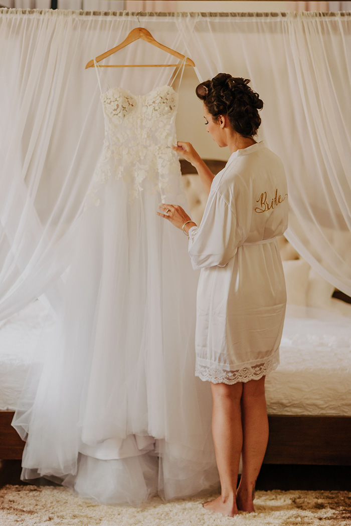 “Nós queríamos um casamento no campo desde o início, com um clima família, mas que tivesse nossa cara. Nós não queríamos algo que intimidasse nossos convidados, muito pelo contrario, a ideia era ser convidativo e com muito movimento, já que teríamos convidados de diversas nacionalidades.” Além do mais, a Carol e o Ricky queriam incluir os amigos e família nos detalhes, tanto é que a Carol fez questão de ter o bolo da avó Tuta como bolo de corte, e o vestido foi feito com muito amor por sua tia Vera. Eles pediram ainda que cada convidado trouxesse por escrito sua receita preferida, e vão agora transformá-las em um livro de receitas de família. Fizeram questão de ter uma mesa da família bem longa – era muito importante para os dois enfatizar esta união de famílias, mesmo quando elas não falam a mesma língua.