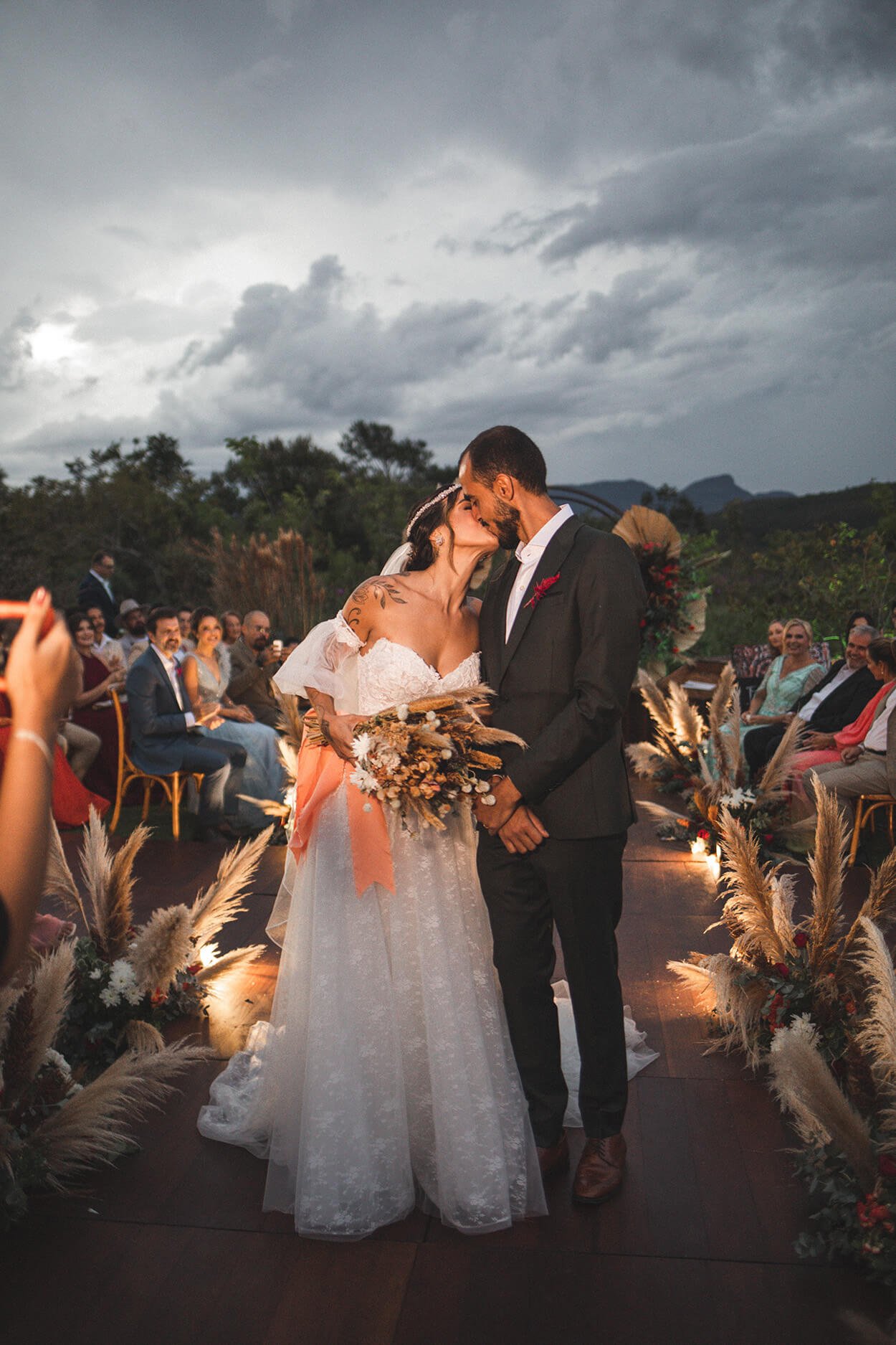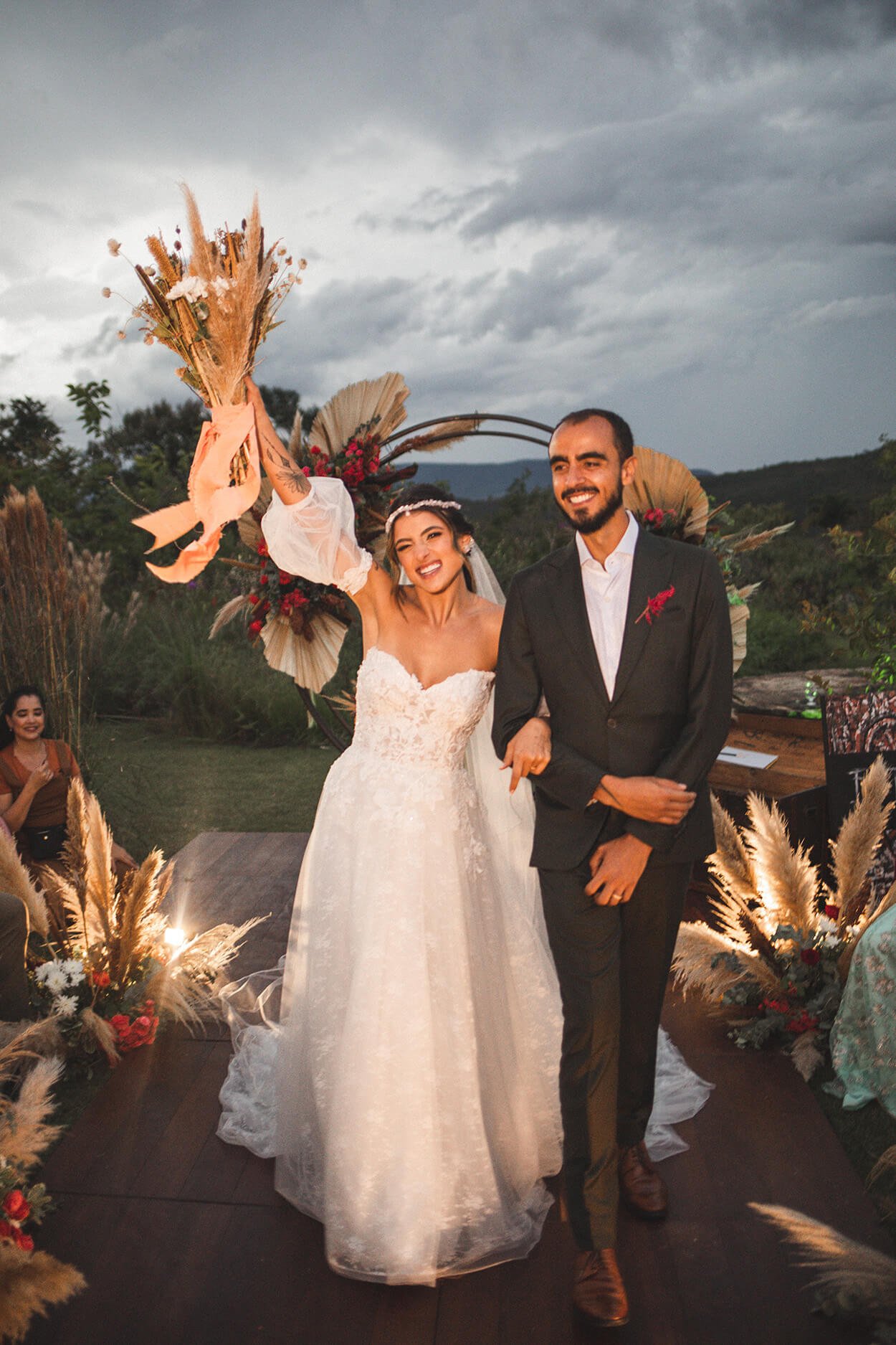 A cerimônia e recepção foi celebrada em meio a natureza, em uma pousada na região da Chapada. E deu para ver no olhar da Àrizla e do Elísio aquela conexão se intensificando momentos antes do “sim”.
