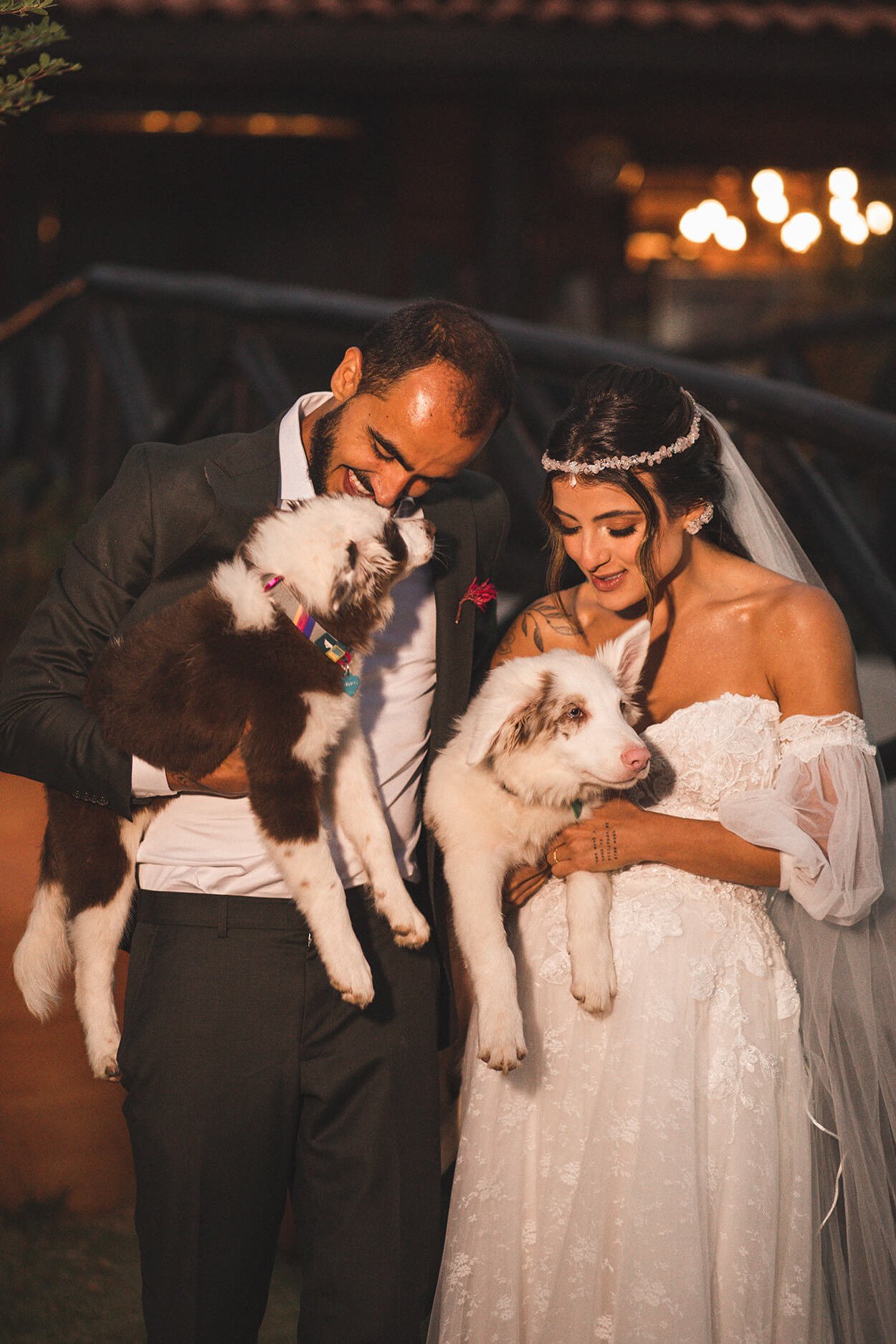 A festa toda foi regada a música e boas energia dos envolvidos. O noivo que é cantor, surpreendeu a todos quando fez uma parte do show, que foi muito especial e tocante. E, para derreter os nosso corações, até os filhotes de quatro patas participaram desse momento lindo!