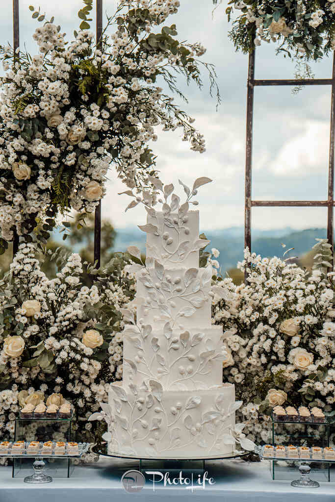 Na semana anterior choveu granizo na região, então fiquei receosa, mas Deus cuidou de tudo, e o tempo naquele final de semana não poderia ter sido melhor! Com o clima fresco da serra, o céu abriu quando eu caminhava para o altar!