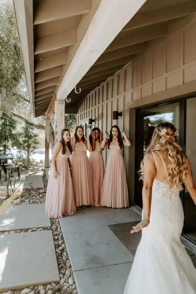 Se estiver acompanhada, é o momento perfeito para realizar fotos incrível como aquele momento em que a mãe da noiva fecha o vestido, ou que as madrinhas de casamento veem a noiva pronta em primeira mão.