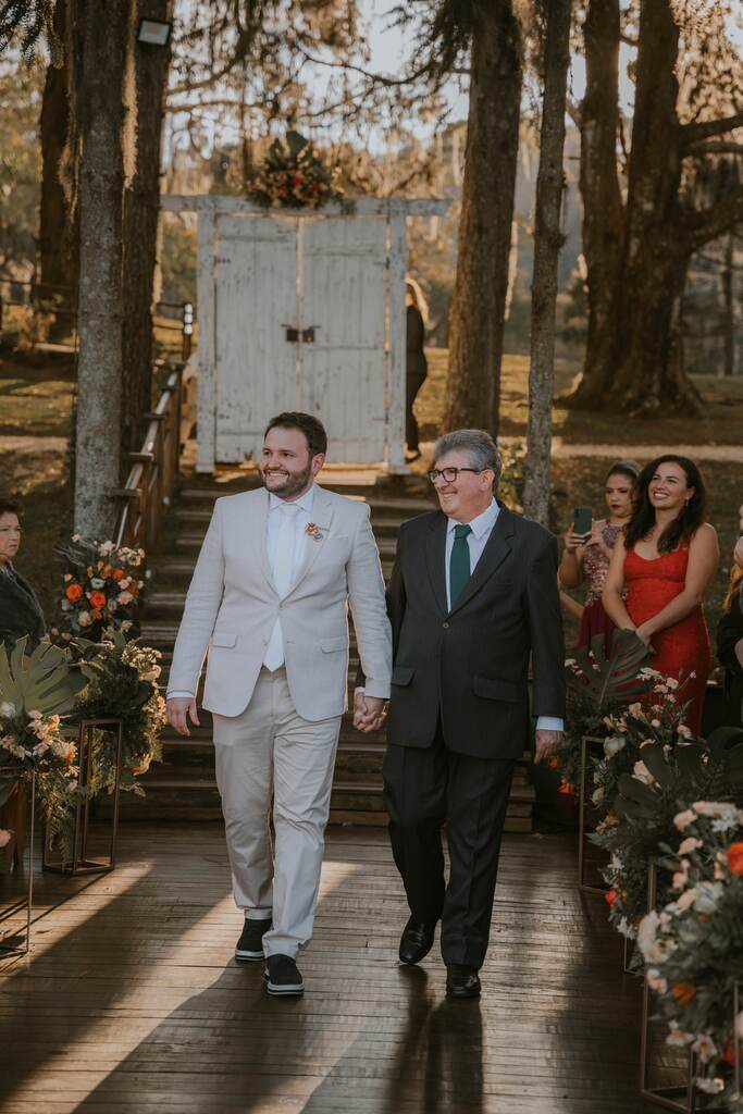 O momento mais inesquecível foi a entrada no altar, com certeza. Estava tão nervosa e ansiosa, só que de uma forma boa. Eu nunca senti nada igual mas quando vi o Tiago me esperando, foi como se a paz e tranquilidade me invadissem novamente.”