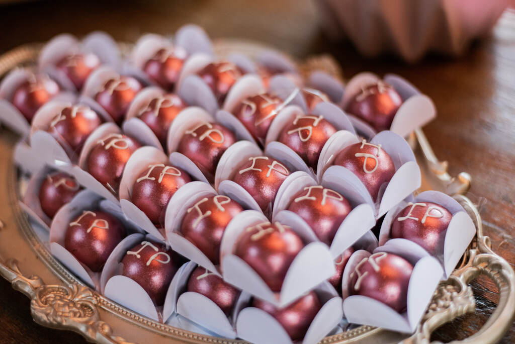 “As madrinhas usaram o tom de rosa que mais gostaram, as mães usaram bordô, e os pais e padrinhos usaram terno preto com gravata bordô.”