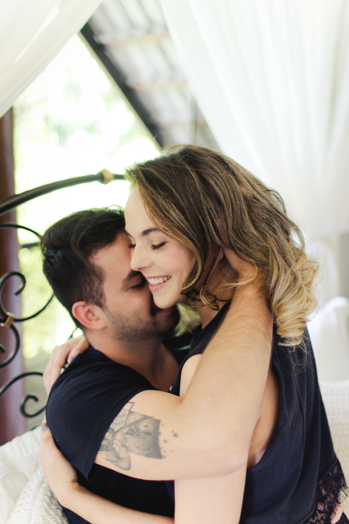 A proposta do O Boudoir Casal é ser um ensaio leve com um toque de sensualidade, ao mesmo tempo, que conta a história do casal a cada clique. Ele pode ser realizado no pré wedding, na casa nova, depois do casamento, para comemorar aniversários, dia dos namorados.