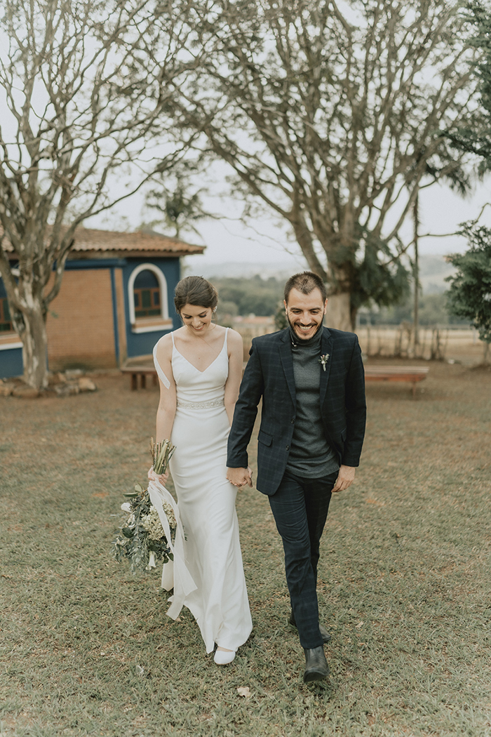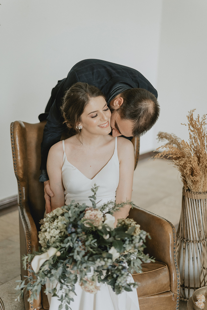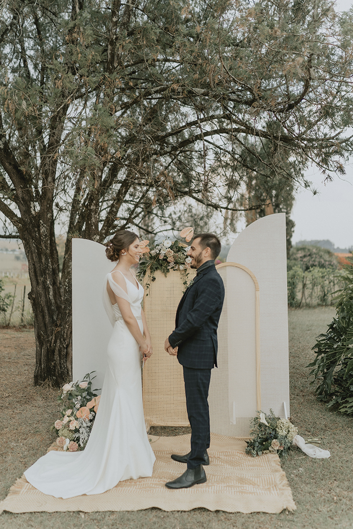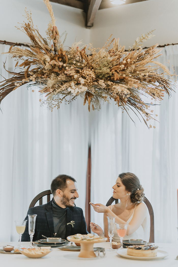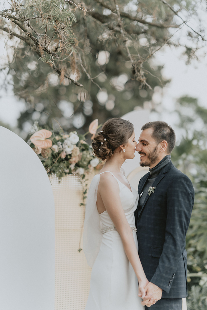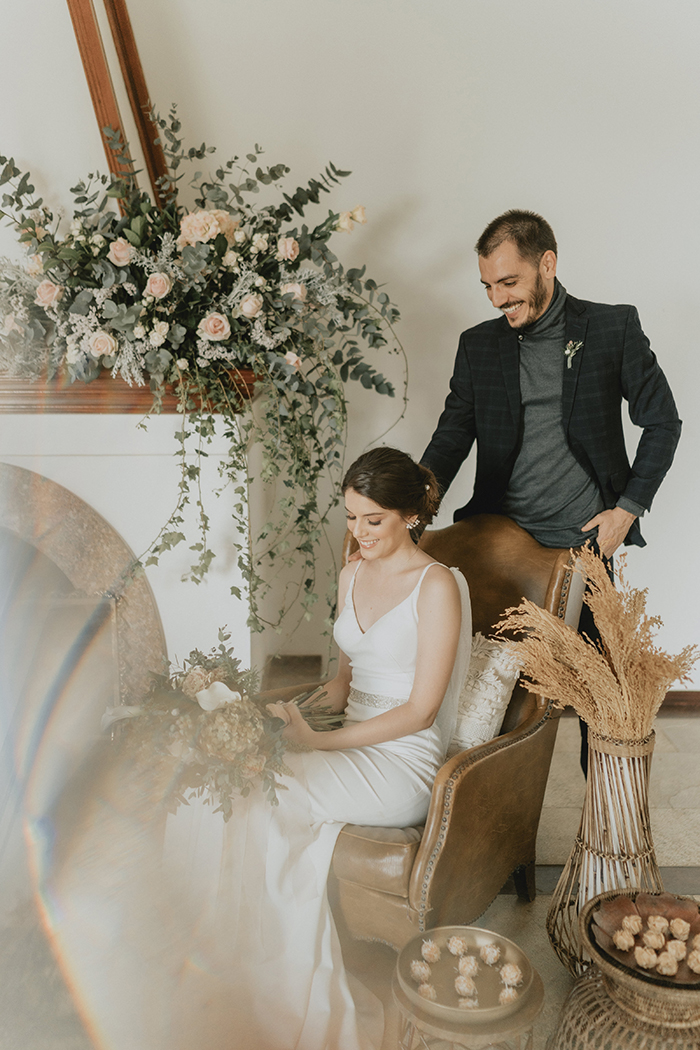 Este estilo remete muito ao conforto, aconchego, lar, família. “Acreditamos que neste ano de pandemia essas características ficaram ainda mais evidentes na vida da maioria das pessoas, este período nos convidou ao acolhimento em nossos lares, a interagirmos mais com aqueles que convivem conosco todo dia, passamos a não dar mais tanta importância pelo material e mais pelas pessoas e pelo tempo que passamos com elas.” Por isso a ideia do editorial era trazer essa sensação de um casamento dentro de casa, com aconchego, algo bem mais intimista, apenas com os noivos, pais e irmãos, pessoas que realmente são do núcleo familiar e que acompanharam a história do casal desde o início.