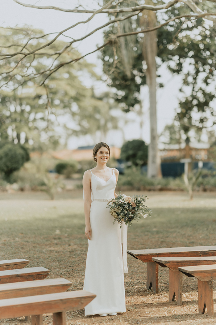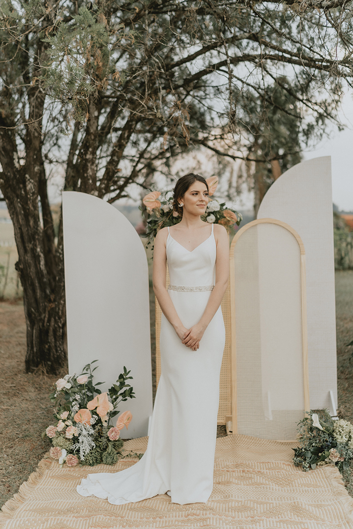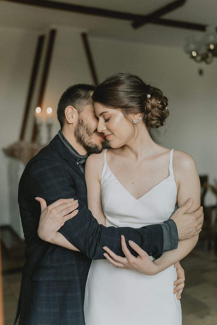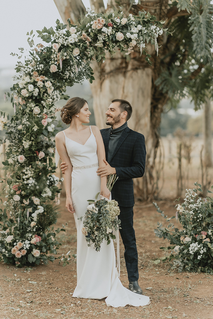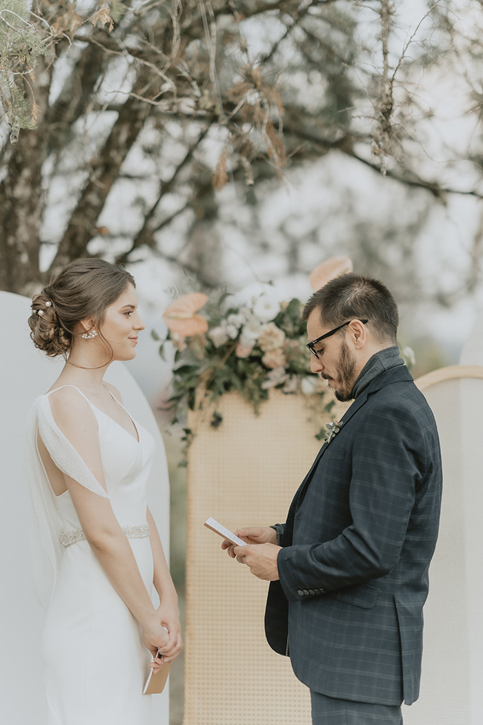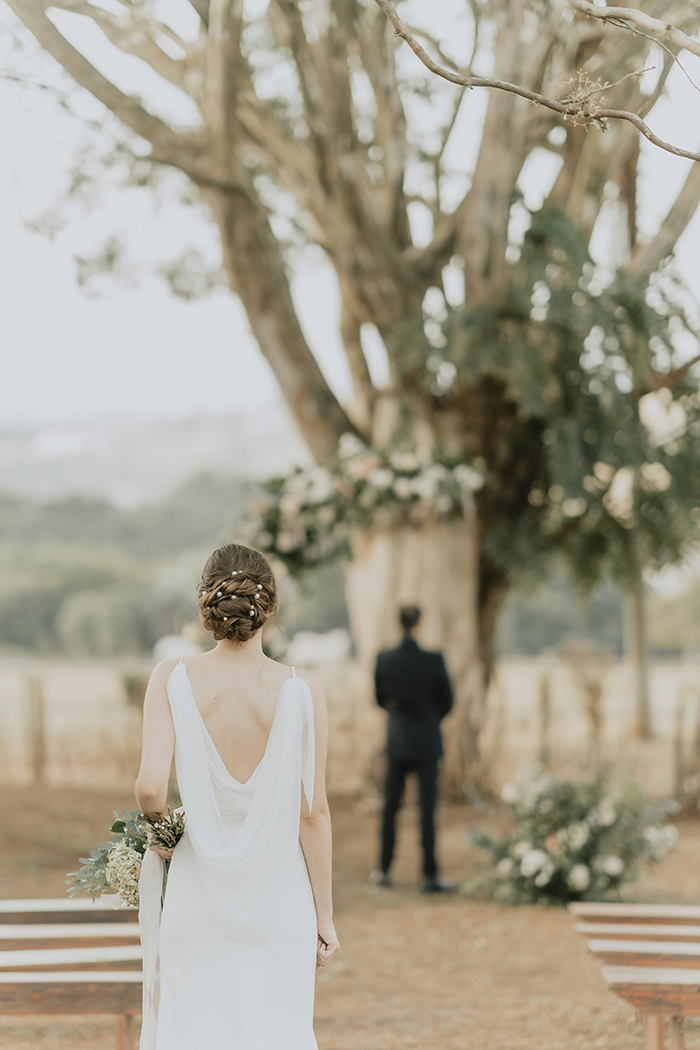 Este estilo remete muito ao conforto, aconchego, lar, família. “Acreditamos que neste ano de pandemia essas características ficaram ainda mais evidentes na vida da maioria das pessoas, este período nos convidou ao acolhimento em nossos lares, a interagirmos mais com aqueles que convivem conosco todo dia, passamos a não dar mais tanta importância pelo material e mais pelas pessoas e pelo tempo que passamos com elas.” Por isso a ideia do editorial era trazer essa sensação de um casamento dentro de casa, com aconchego, algo bem mais intimista, apenas com os noivos, pais e irmãos, pessoas que realmente são do núcleo familiar e que acompanharam a história do casal desde o início.