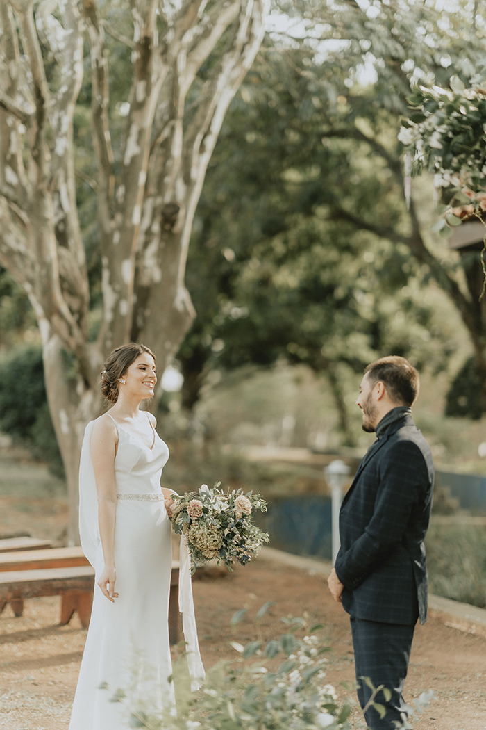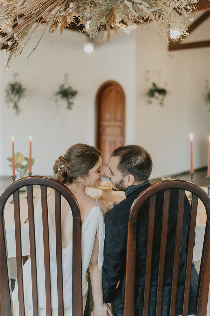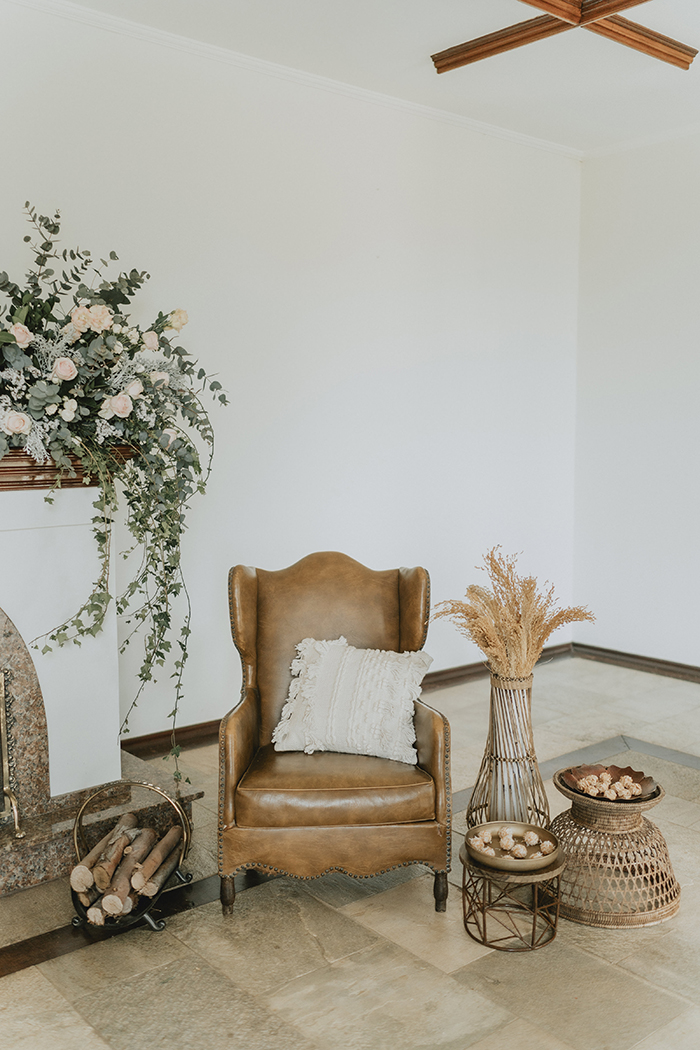 Este estilo remete muito ao conforto, aconchego, lar, família. “Acreditamos que neste ano de pandemia essas características ficaram ainda mais evidentes na vida da maioria das pessoas, este período nos convidou ao acolhimento em nossos lares, a interagirmos mais com aqueles que convivem conosco todo dia, passamos a não dar mais tanta importância pelo material e mais pelas pessoas e pelo tempo que passamos com elas.” Por isso a ideia do editorial era trazer essa sensação de um casamento dentro de casa, com aconchego, algo bem mais intimista, apenas com os noivos, pais e irmãos, pessoas que realmente são do núcleo familiar e que acompanharam a história do casal desde o início.