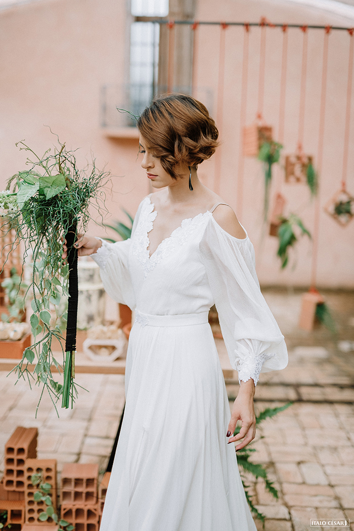O Ítalo César precisava de pessoas para dar vidas às suas fotos, então convidou a Barbara, que fotografa casamentos com ele, para ser modelo. O namorado dela super topou e fizeram algo bem especial, com ela usando um delicado vestido da Julia Pak.