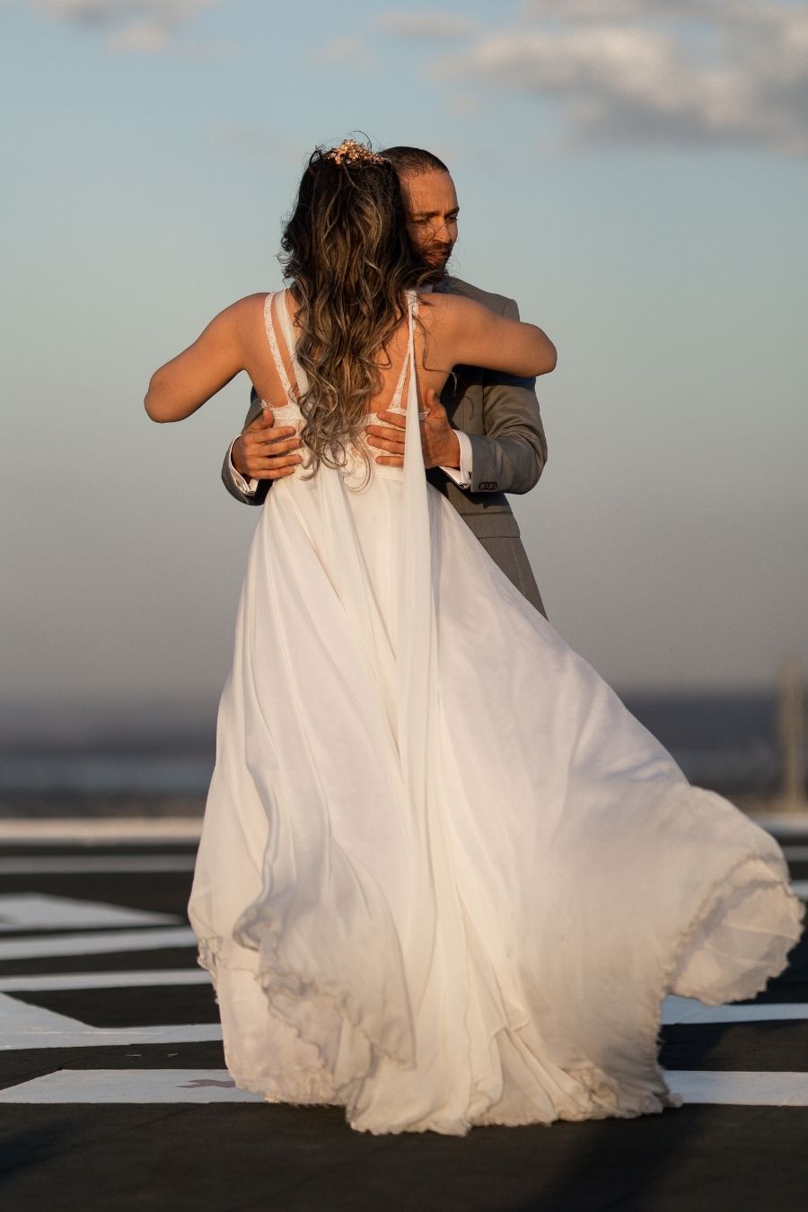 O editorial partiu de um sonho que tive, e um casal dançando em um heliporto. Fui muito inspirada em JK a realizar o que sonhar”. O foco do editorial foi total no belíssimo céu de Brasília.