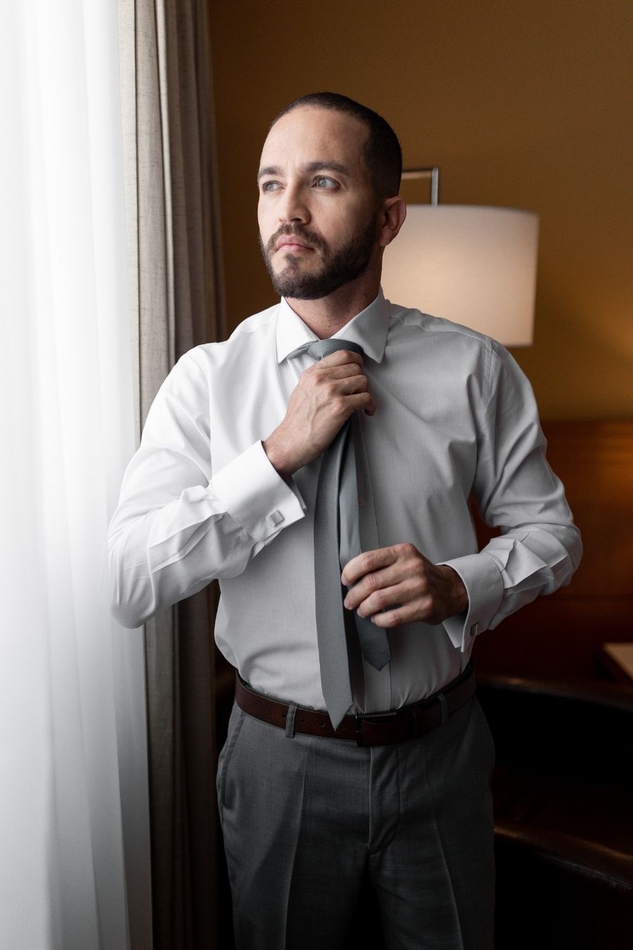 O noivo esbanjou charme em um terno de bom corte e cores que combinaram com o cenário ao redor. Tudo com muita leveza para o noivo dançarino!