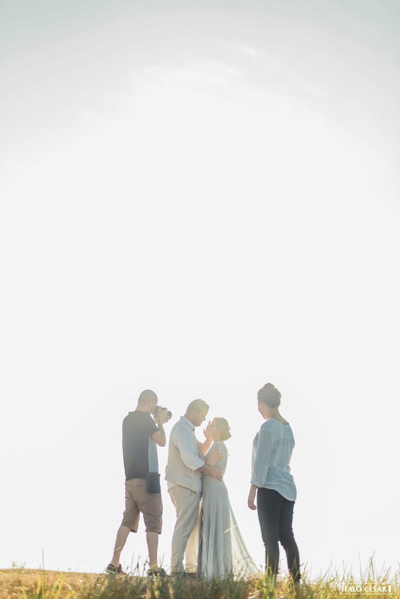 Meu trabalho envolve muito a questão de sentimentos que a foto trás a tona, então uma coisa certa era que deveria ser um casal real. Logo pensamos em um casal já casado, pois uma vez que já haviam feito o casamento como quiseram, agora era uma nova oportunidade de fazer diferente e aproveitar tudo com uma nova perspectiva.