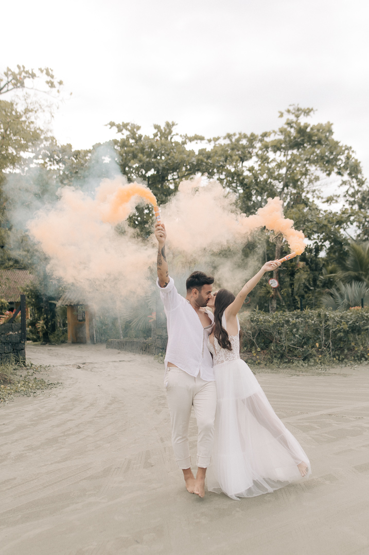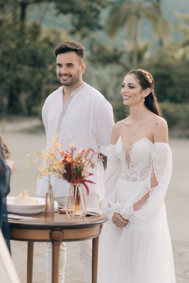 Esta cerimonia foi escolhida para completar esse clima agradável trazido pelo cenário da praia.