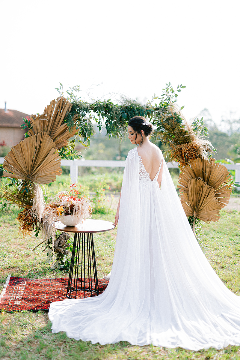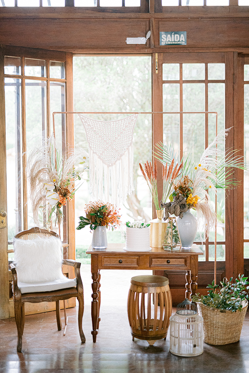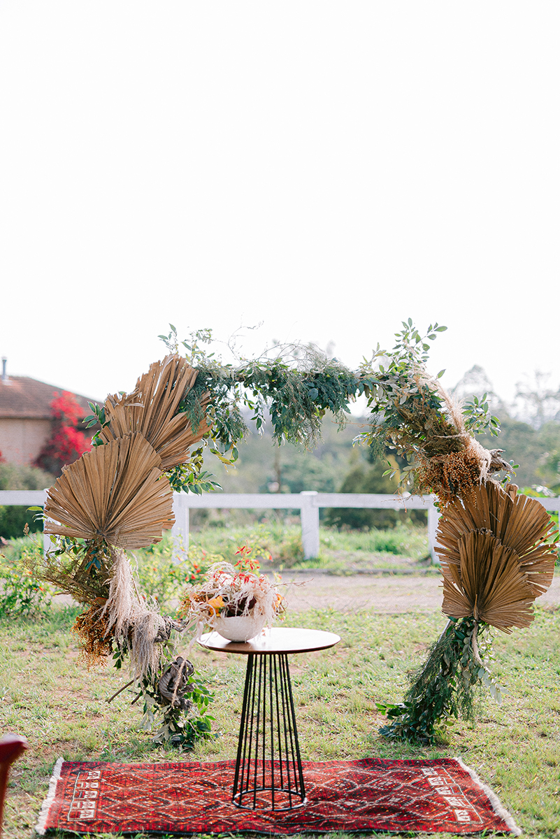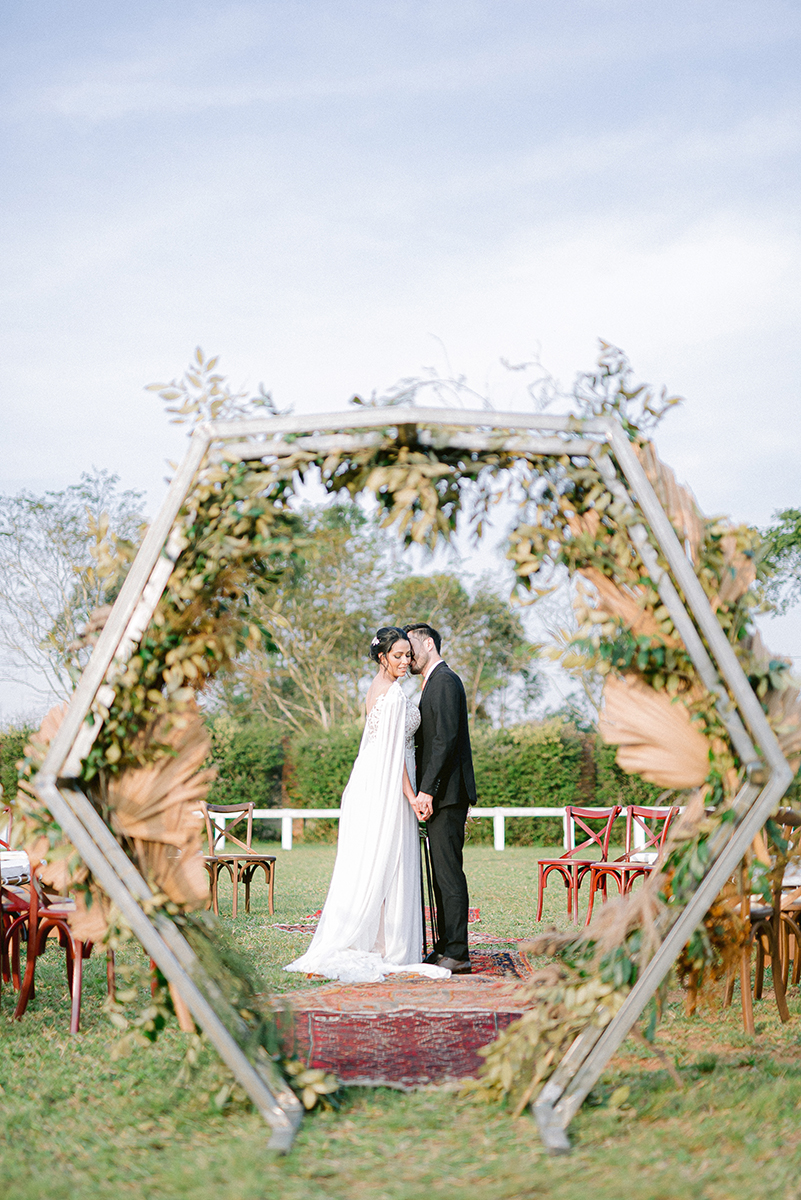 “Pensamos sempre em usar a identidade do Brasil e o que nossa terra oferece. Folhas grandes, flores nativas, raízes, sementes e pimenta pra deixar o clima mais quente.” A textura e mistura disso tudo mostra que o Brasil está cada vez mais inspirador para casamentos mais autênticos e verdadeiros.