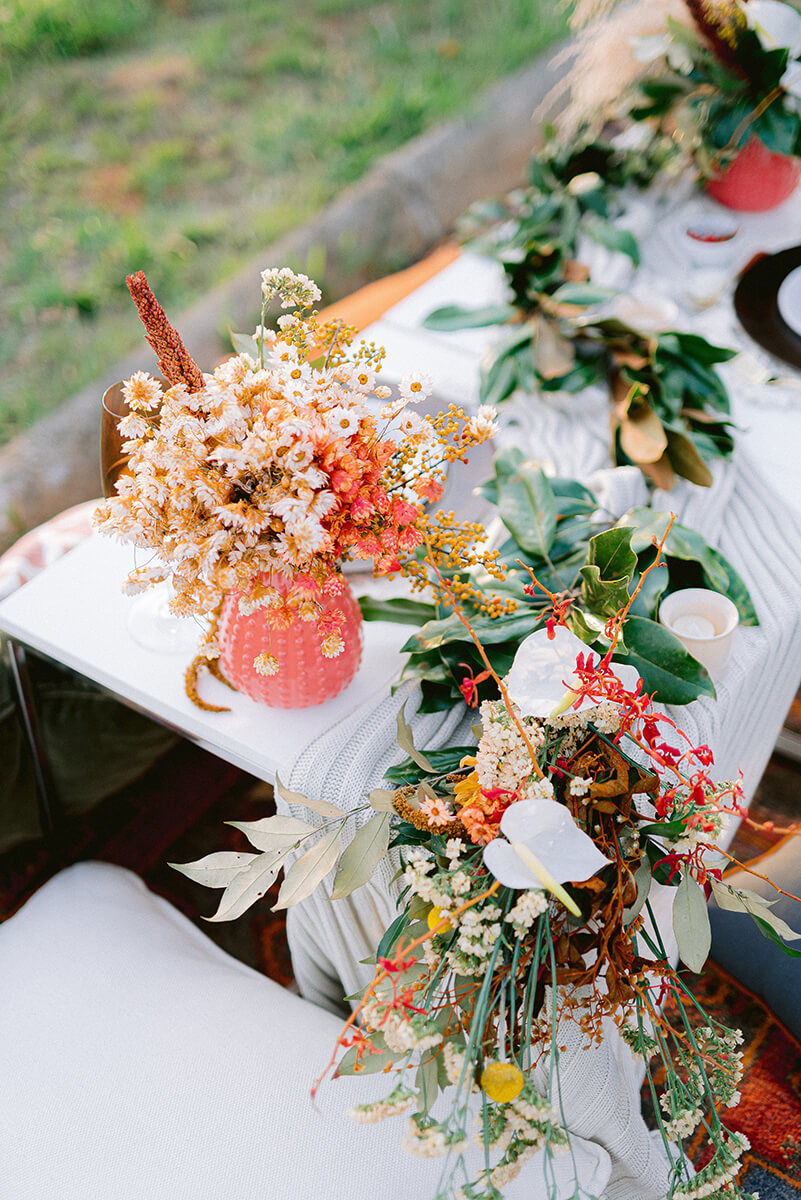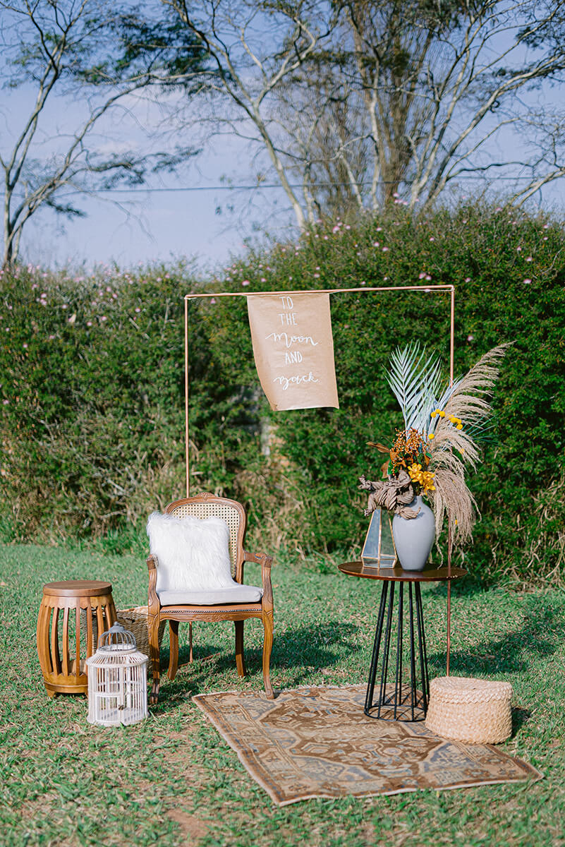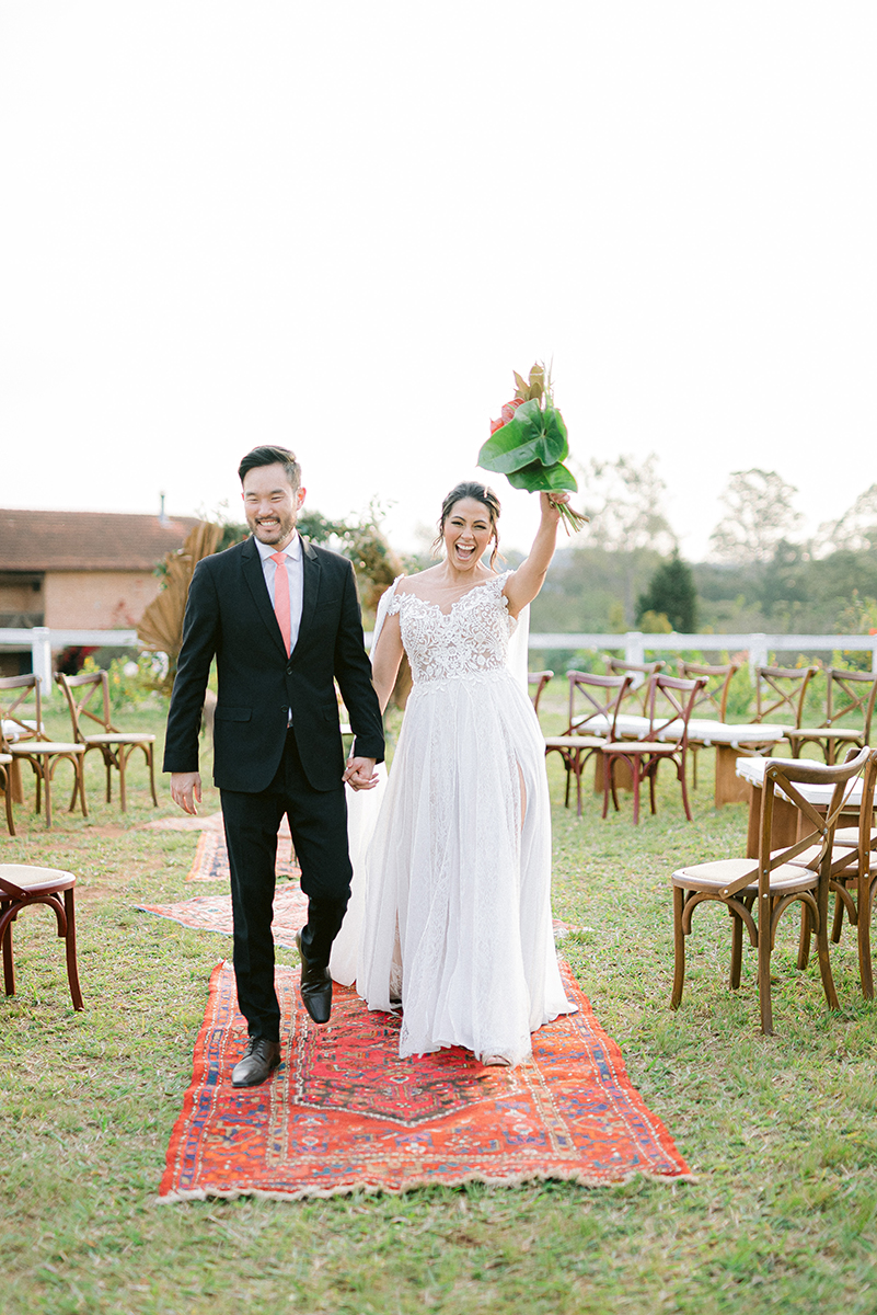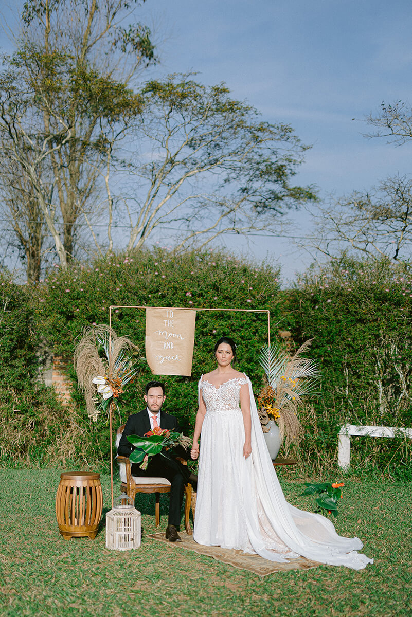 “Pensamos sempre em usar a identidade do Brasil e o que nossa terra oferece. Folhas grandes, flores nativas, raízes, sementes e pimenta pra deixar o clima mais quente.” A textura e mistura disso tudo mostra que o Brasil está cada vez mais inspirador para casamentos mais autênticos e verdadeiros.