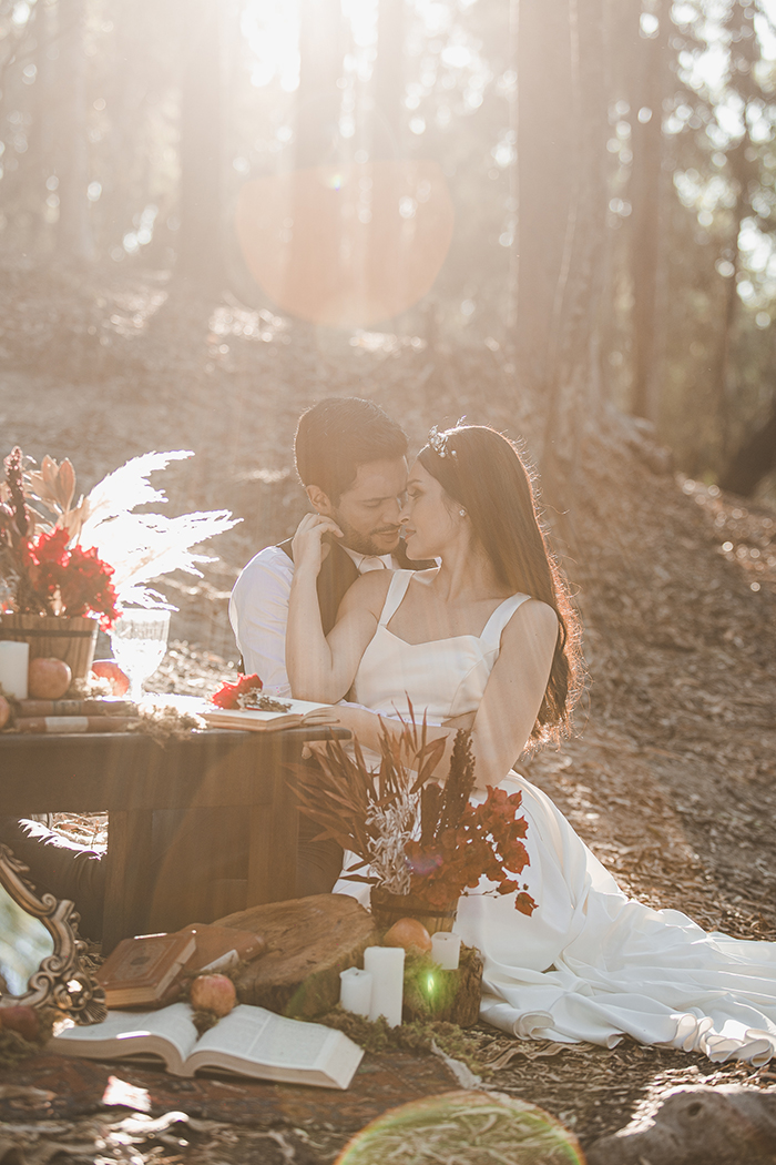 A locação das fotos – um bosque de pinheiros – inspirou a criar a ideia de um passeio no bosque entre a Branca de Neve e seu príncipe, com direito até a um piquenique a dois para o editorial Once Upon a Time.