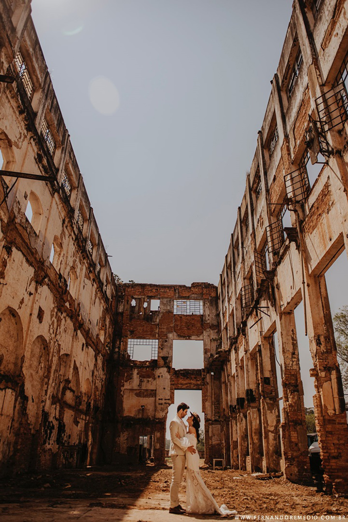 O cenário escolhido foi para uma cerimônia nas ruínas da antiga usina localizada no Bairro Monte Alegre, na cidade de Piracicaba, São Paulo.