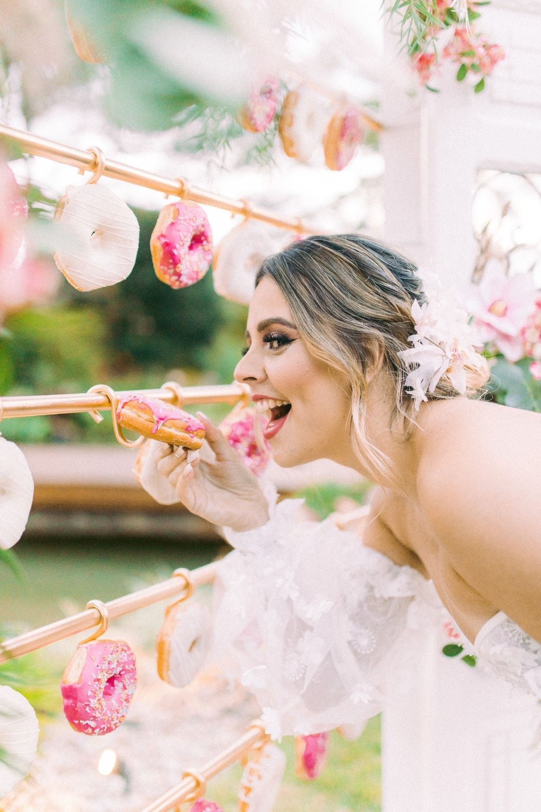 “Notamos que, nos últimos anos, principalmente com a chegada do rústico e do boho, os casais começaram a achar decorações em tons de rosa um tanto brega, mas como decoradoras nós sabemos como um casamento com essa paleta de cor pode ser moderno, atemporal e incrivelmente lindo, assim como ficou o resultado final do editorial.”