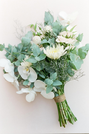 Para dar vida ao jardim de sonho, foram usadas muitas flores campestres e folhagens verdes, criando uma estética minimalista e fresca. “Nós tínhamos um belo arranjo de flores em seu quarto, combinado com tecido rosa e seus livros favoritos, seu próprio buquê grande e romântico e um incrível arranjo de flores em frente à parede azul da fazenda Vassoural, onde ela podia se sentir pronta para ir buscar casado.”