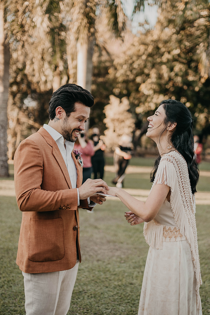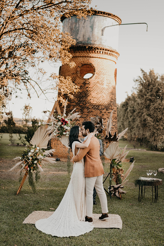 A espontaneidade desse dia, retratado com o amor na sua essência, captou a essência do casal e da vibe boho que os fornecedores queriam passar.