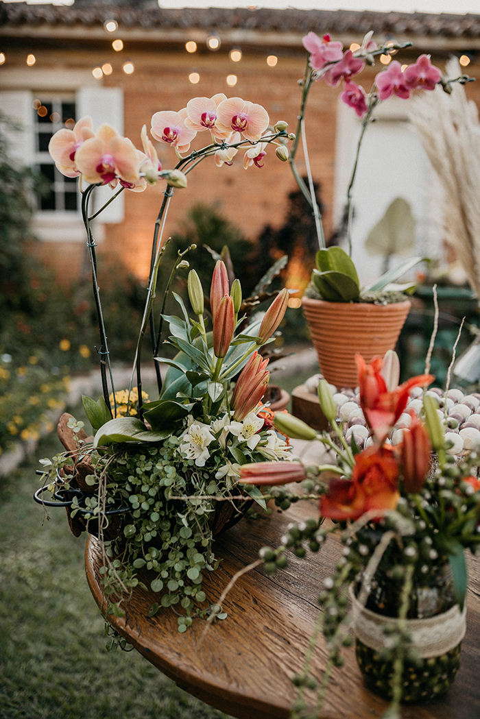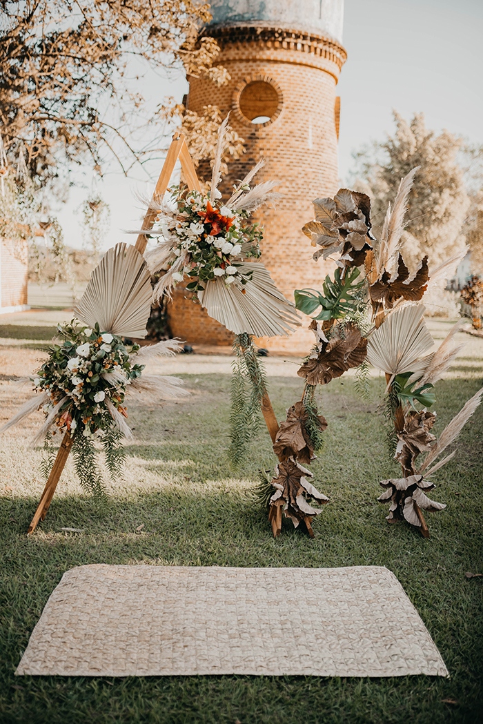 Tudo criou vida com as cores da decoração da Flor Brasileira, uma decoração cheia de sensibilidade, em tons terrosos e românticos, plantas e flores enraizadas em seus vasos, folhas que um dia foram verdes mas hoje secas e caídas no chão foram recolhidas com todo cuidado por essas artistas e passaram a decorar o altar do nosso sonho. “Nosso objetivo era levar leveza e simplicidade sem abrir mão da beleza e elegância, a ideia é mostrar que dá para fazer uma decoração de personalidade sem se preocupar com modismo.”