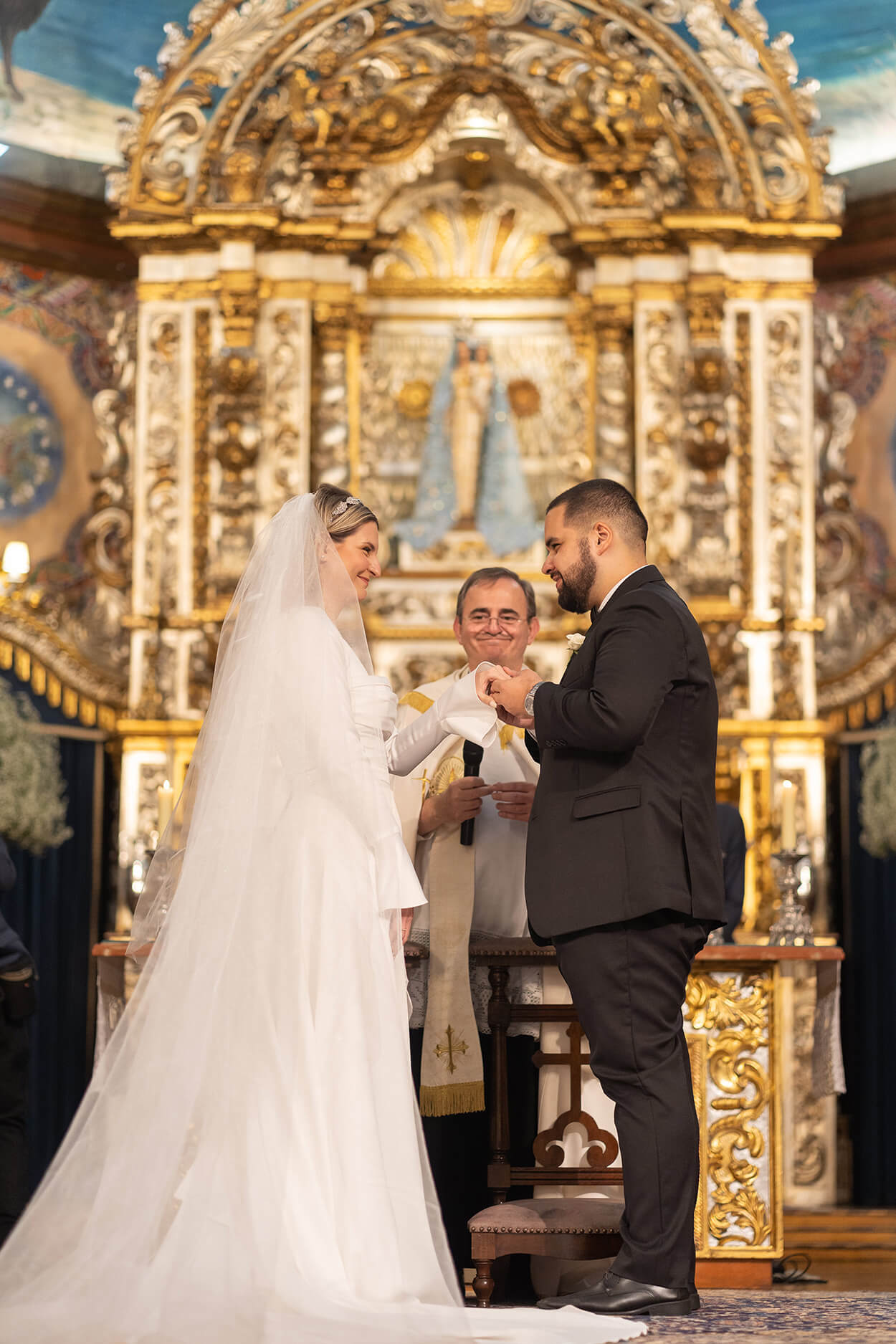 “A proposta era de um casamento atemporal, porém com toques de modernidade, sem perde a vibe intimista, pois somos super família. Então decidimos pela Paróquia Nossa Senhora do Brasil, pois sou devota e que, apesar de uma das mais
