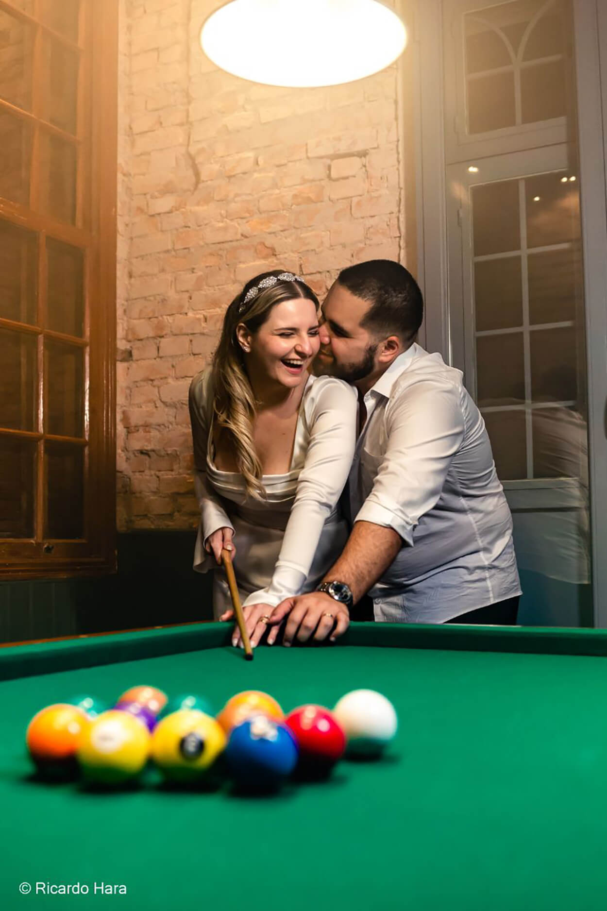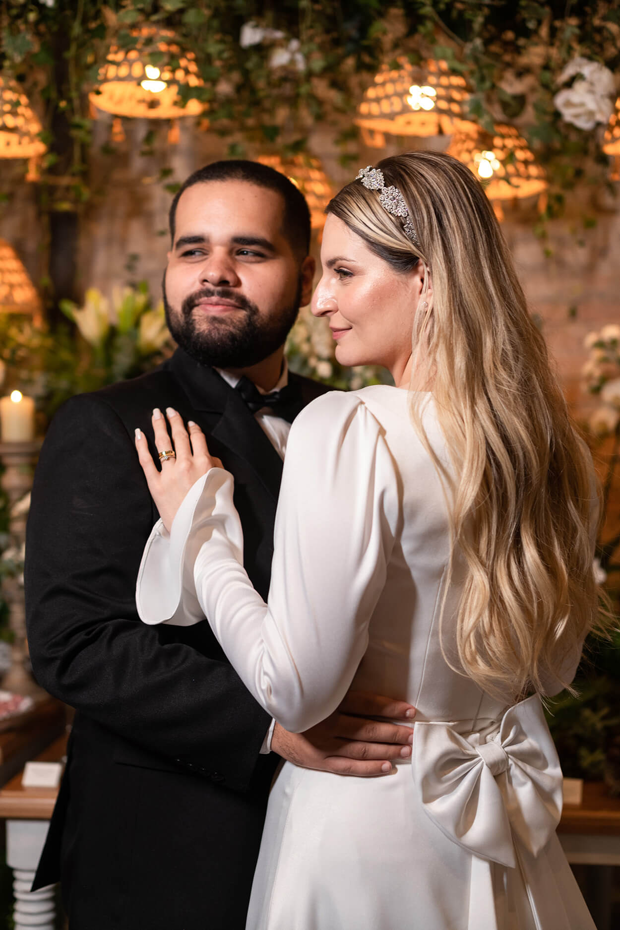 Também foi emocionante ver o meu marido buscando as alianças com a minha avó paterna, que veio do interior só para o casamento. Ela estava super ansiosa com a sua missão do dia. Inesquecível! E na festa, nós dançamos a última música antes de acabar, sozinhos na pista. A música foi aquela que o noivo colocou no momento do pedido.”