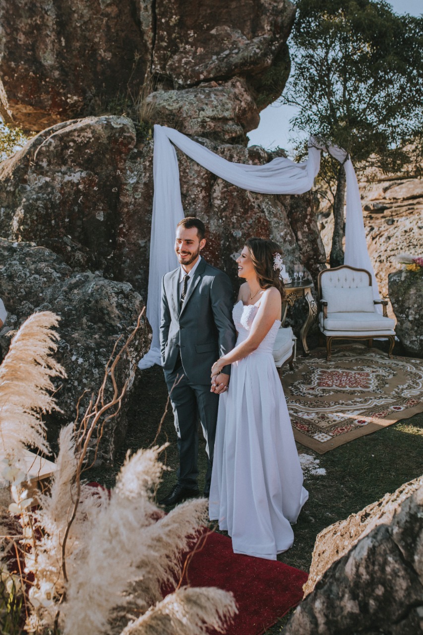 A principio não iriam se casar, mas souberam de um concurso que buscava casais para um Elopement Wedding. Ganhadores, o casal disse SIM com direito á uma paisagem singular no Paraná deslumbrante, numa doce tarde de sol e céu azul.