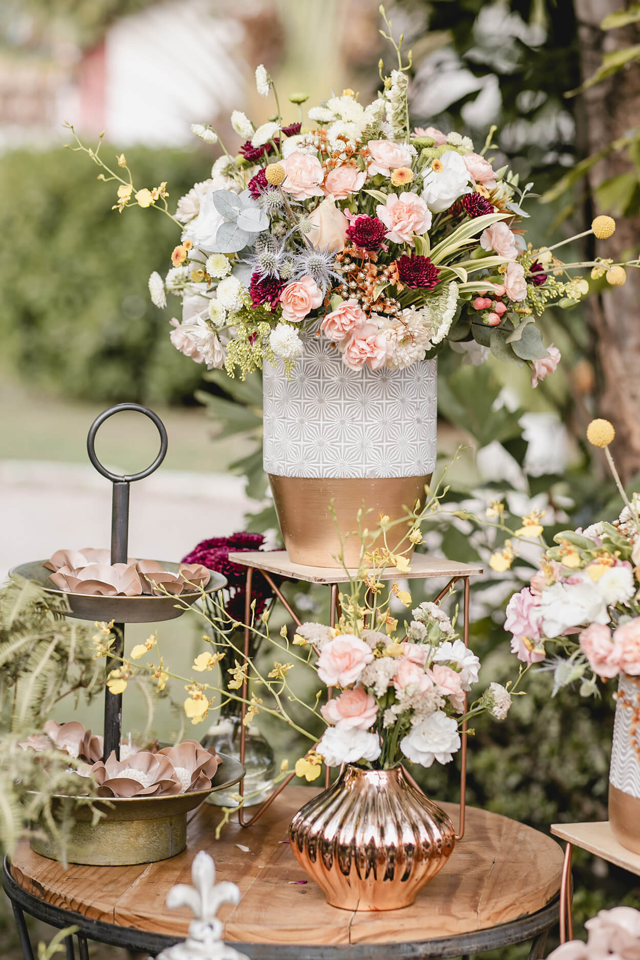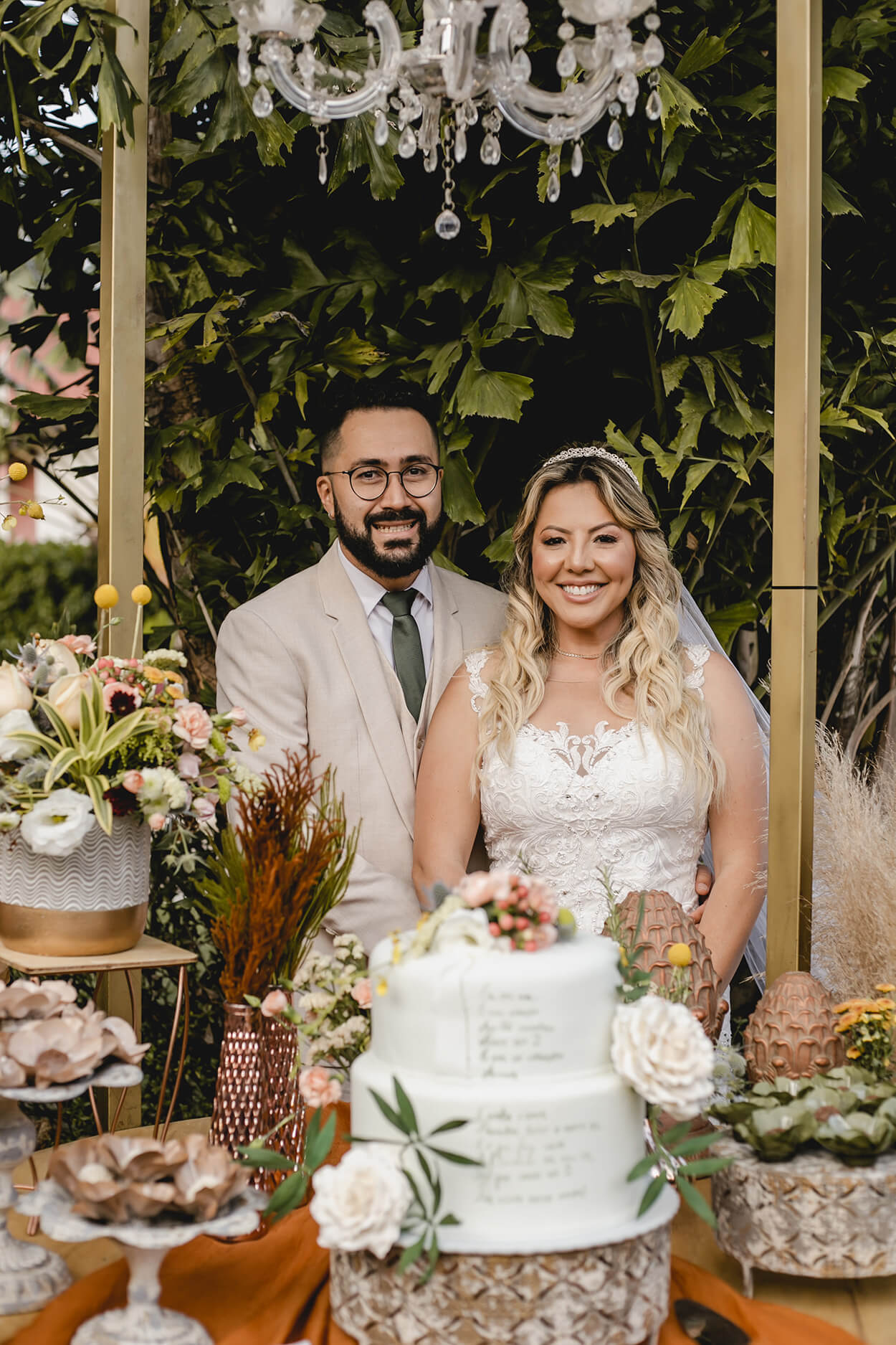A decoração foi definida dentro do estilo boho junto com tons claros e coloridos para representar o início da primavera. “Tanto eu, Abiane, quanto Don sempre gostamos do estilo boho, amamos plantas e o tema não seria diferente desse, descrevendo totalmente nossa personalidade”.