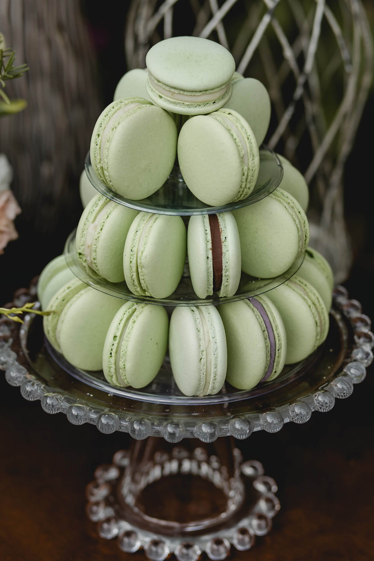 A mesa do bolo é a definição de delicadeza! Os bem-casados, doces finos e a torre de macarrons chamam a atenção. Mas não tem como negar, o bolo sempre é a estrela da mesa, e ganhou ainda mais destaque com um poema gravado em sua cobertura.