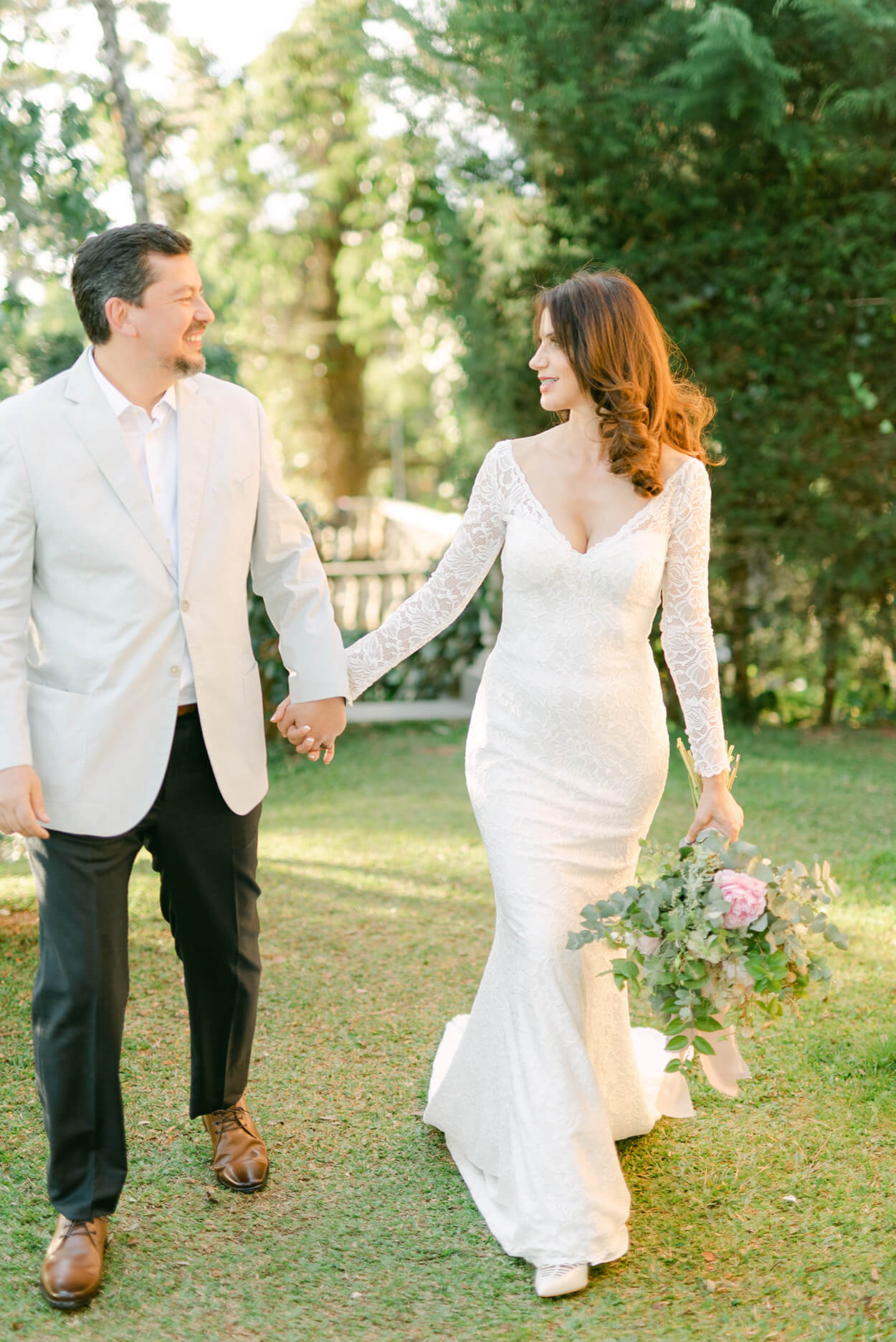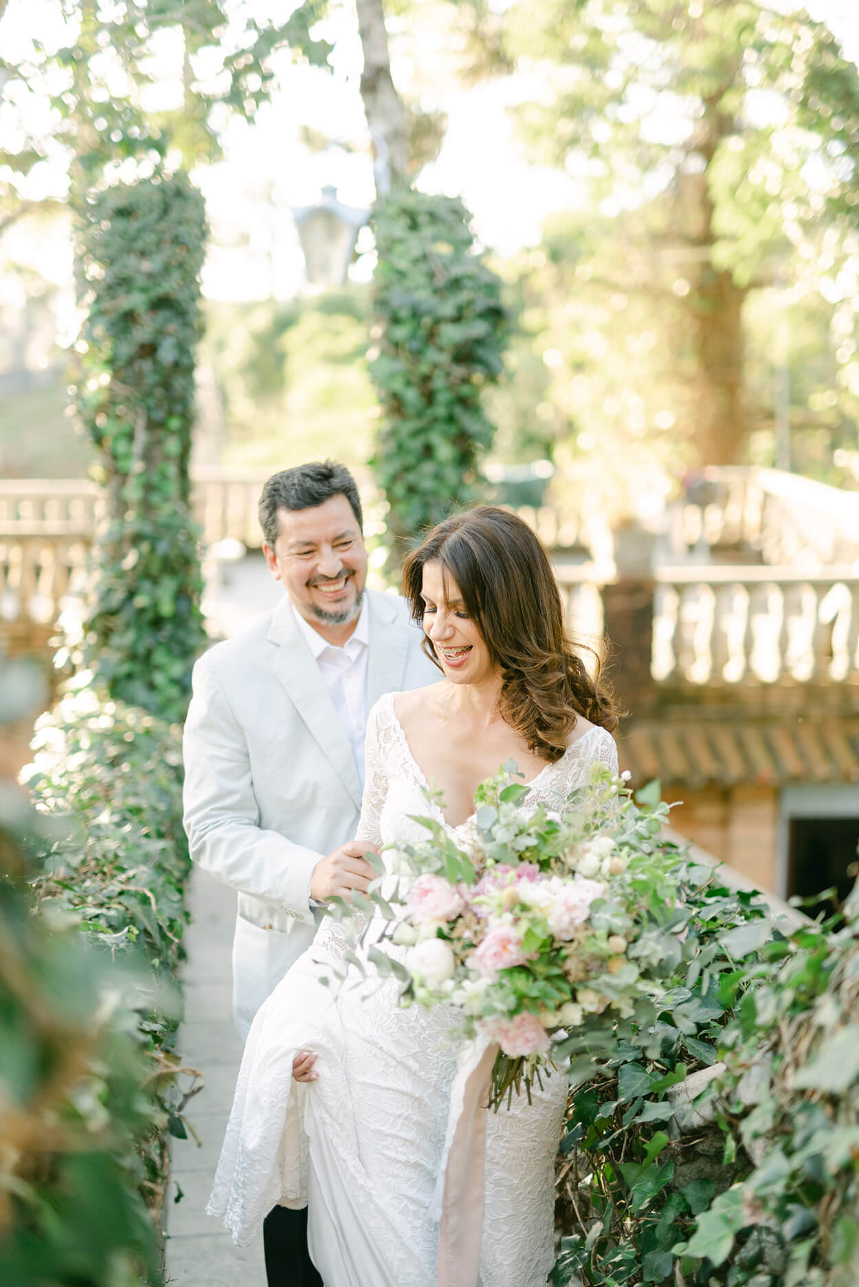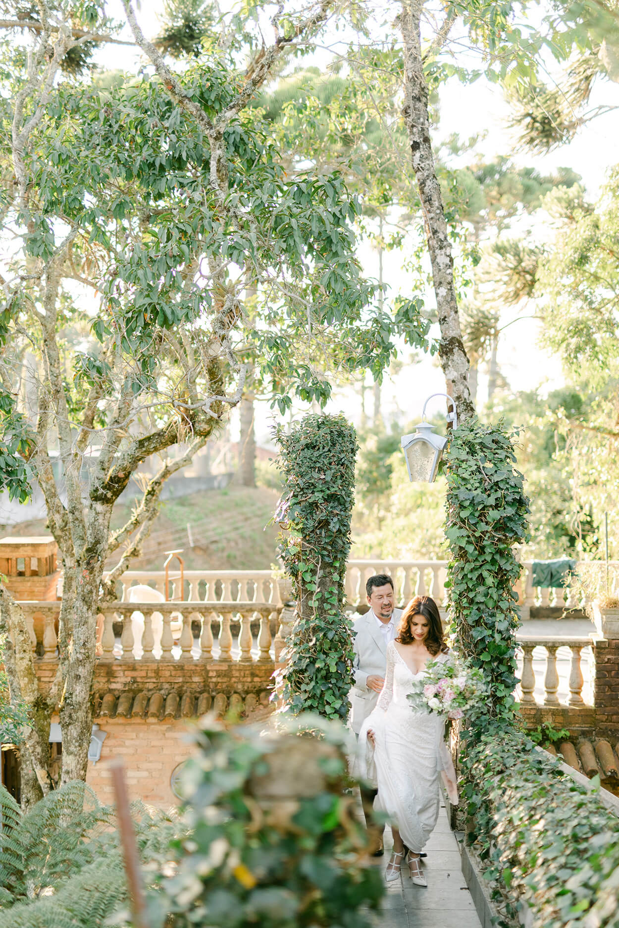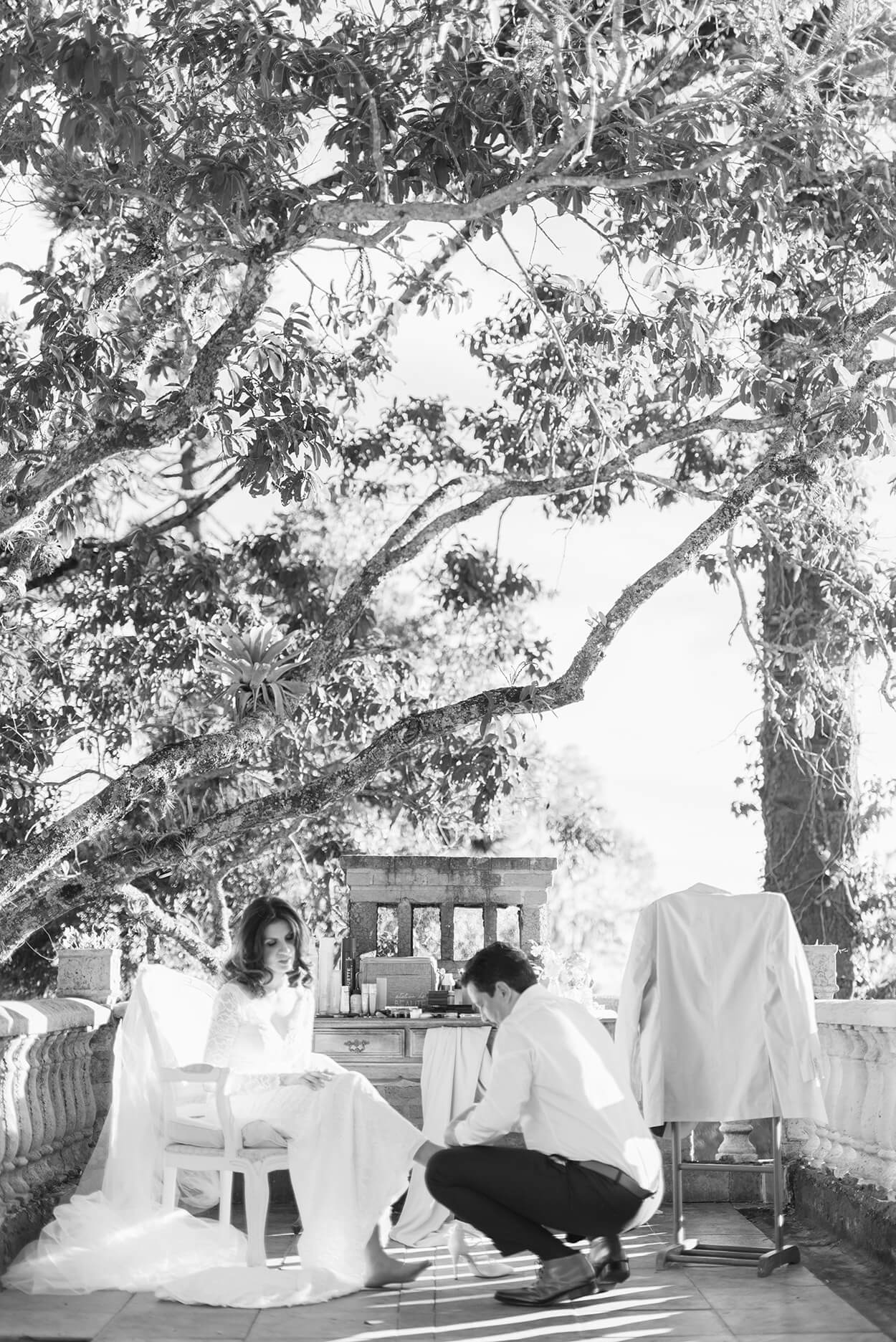 O diferencial desse casamento foi o making of, afinal, os dois se arrumaram juntos e ao ar livre. Até tinha um espaço reservado só para isso, mas o terraço em cima da casa era muito incrível para ser deixado de lado.