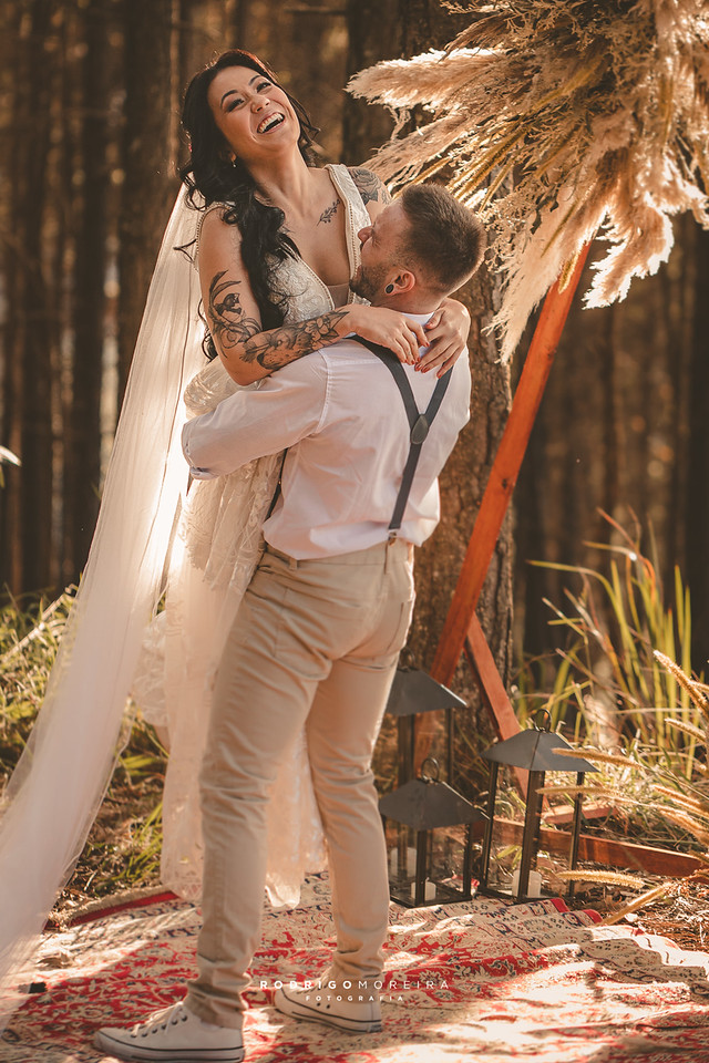 Os dois selaram sua união na Serra de São Domingo, em Minas Gerais, cercados pela natureza e amor entre os dois.