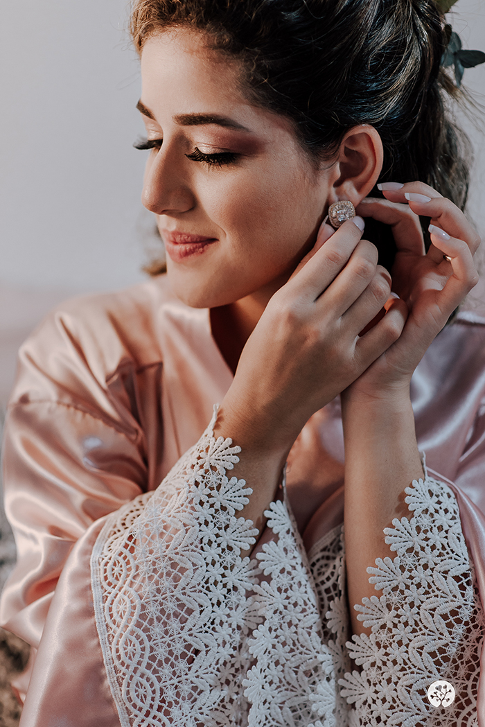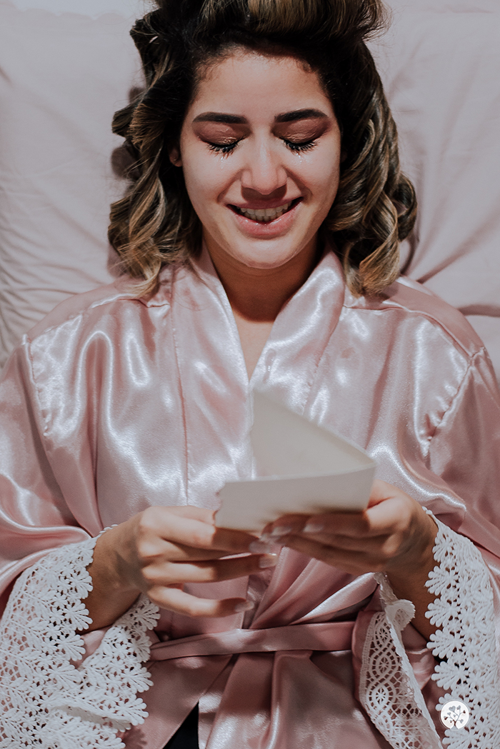 O segundo dia começou às 3h da manhã quando o pessoal chegou para os preparativos do casamento. Em paralelo, o espaço da cerimônia já estava sendo organizado desde às 01:30h. A Bruna e o Gabriel foram para a cerimônia e depois voltaram à casa para um brunch com os pais. “Foi muito especial, a mesa estava linda e tinha muito comida, era no estilo de um café colonial. Depois tivemos um momento onde nossos padrinhos, familiares e amigos próximos gravaram um vídeo nos parabenizando e desejando seus votos para nós, visto que não puderam estar presentes na cerimônia, foi muito emocionante, eu chorava a cada mensagem.” Os noivos curtiram a tarde livre e à noite tiveram um jantar super especial.
