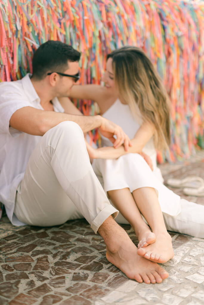 Só para ter uma ideia, o noivo estava com tanto sono que nas fotos perto das fitinhas de Nosso Senhor do Bonfim, ele literalmente dormiu durante as poses de olhos fechados, haha!