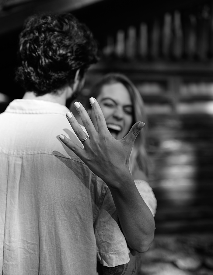 Conversaram sentados na toalhinha na areia, de frente para o mar até que o Neto pediu para a Lívia ficar em pé para dar um abraço nele. Foi aí que ele se ajoelhou e falou “quer casar comigo?” Surpresa, ela respondeu “claro né?”
