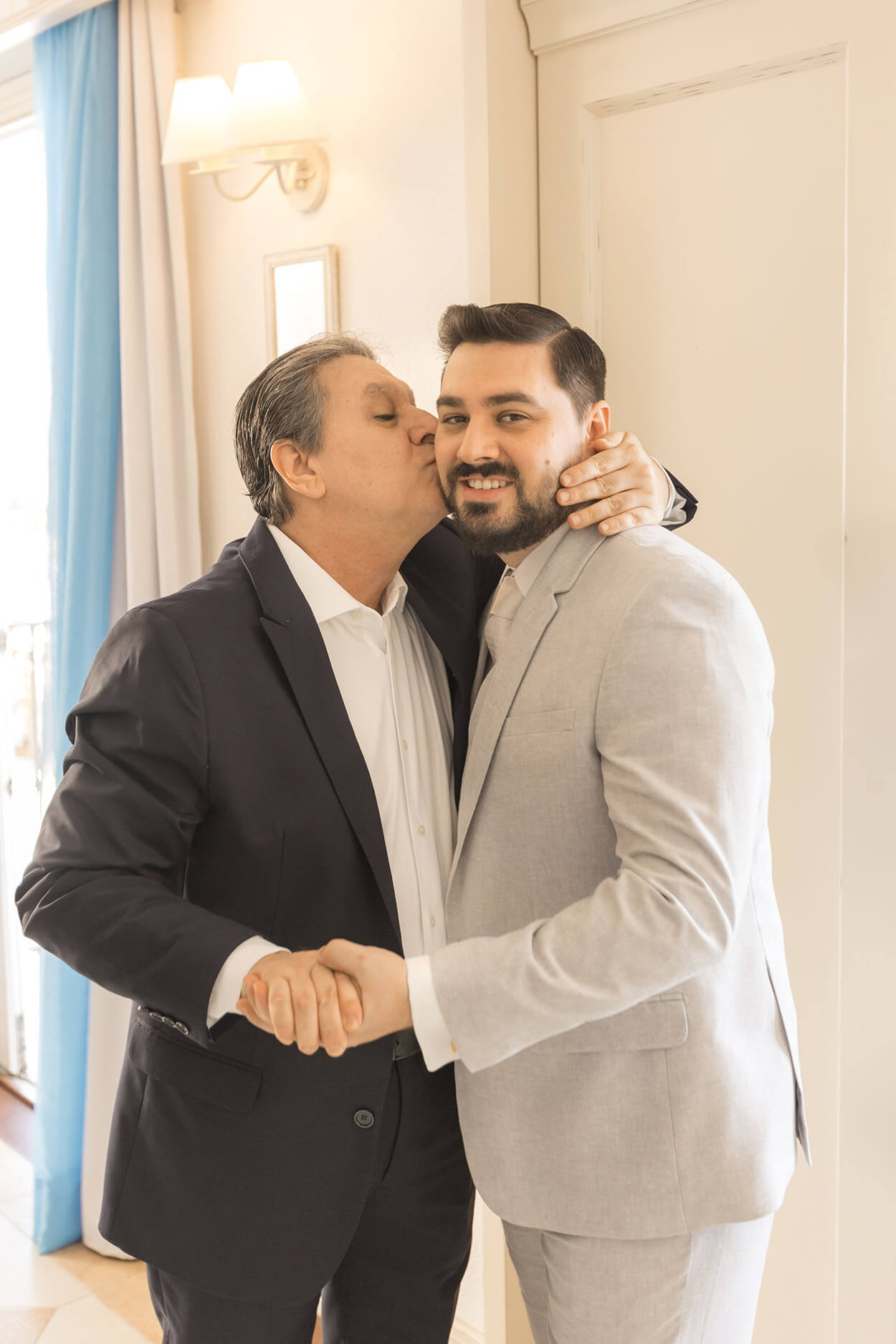 Chegou a hora de espiar o casal! E um detalhe que fez toda a diferença foi a presença da equipe de foto e vídeo para cobrir o making of do noivo com os seus pais.