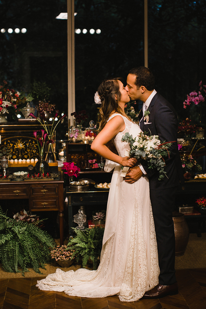Os dois não pensavam em casar com uma decoração imponente, não combina com o espaço e nem com eles. O tema foi: “Um casamento com cara de casa de vó”, que fosse o mais acolhedor possível.
