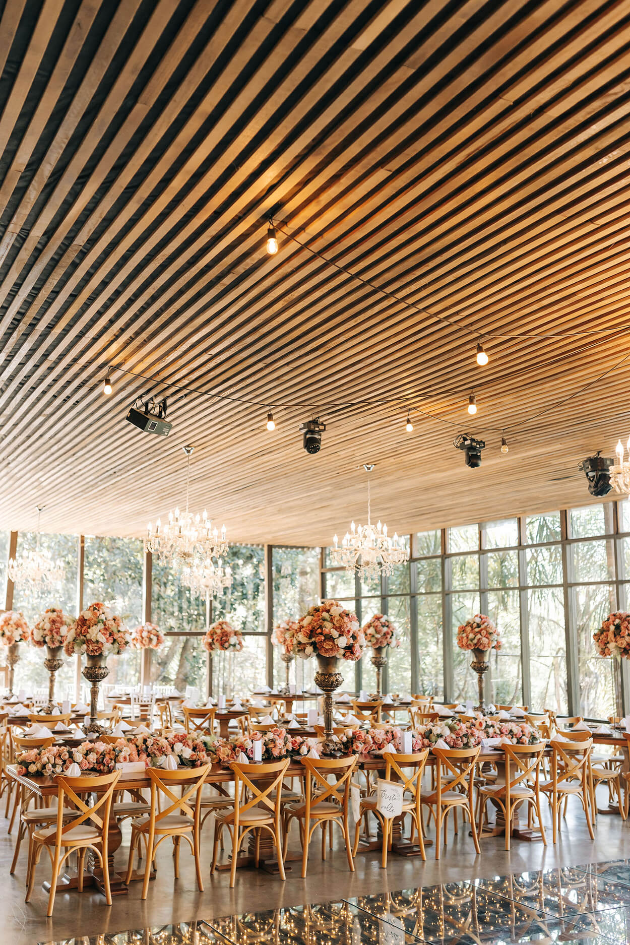 As mesas foram dispostas de uma forma diferente no salão, e isso somado ao centro de mesas grandiosos, tornou o ambiente mais refinado. Chegou a parte que nós mais amamos comentar: o bolo!