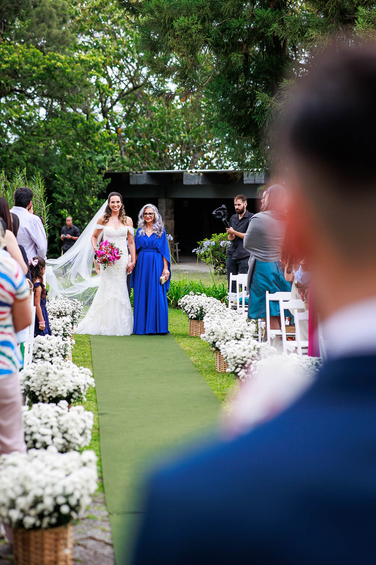 “Chorei muito durante os votos, principalmente porque logo depois de ler os seus, meu noivo pegou o violão e cantou a música que embala alguns fins de tarde na nossa casa: Can’t help falling in love, do Elvis. Essa também foi a música da nossa valsa.”