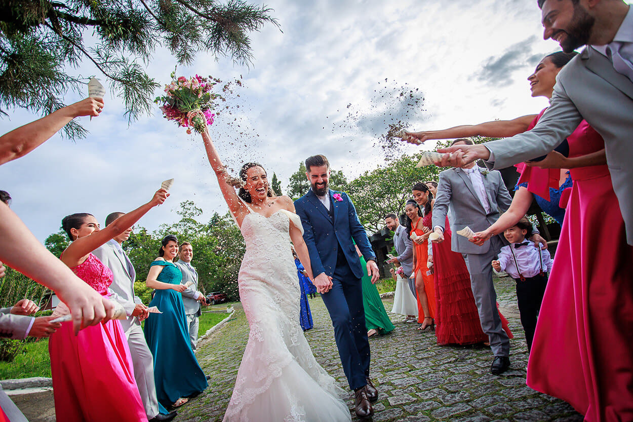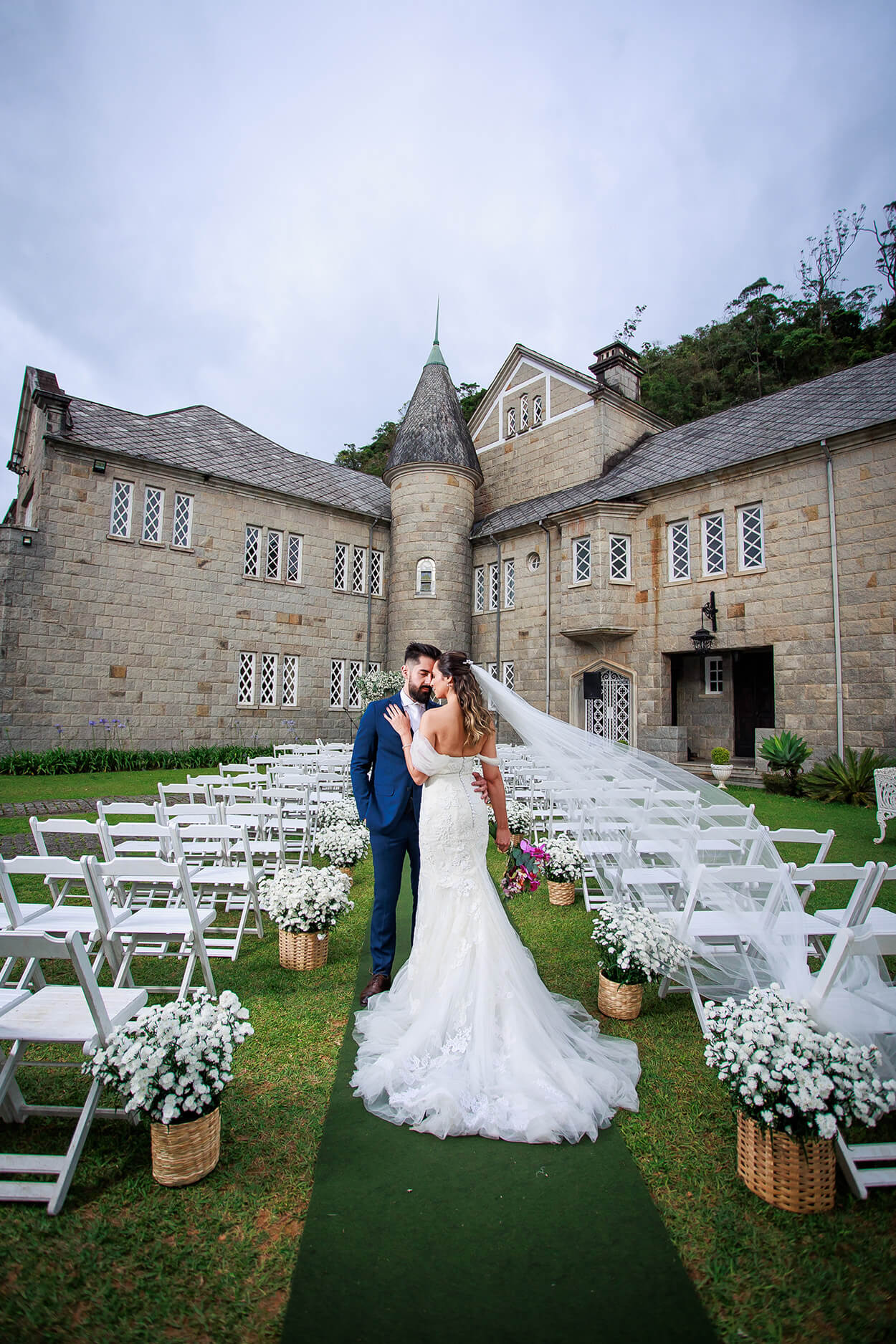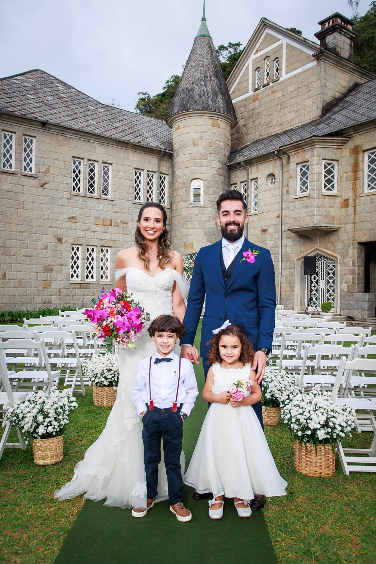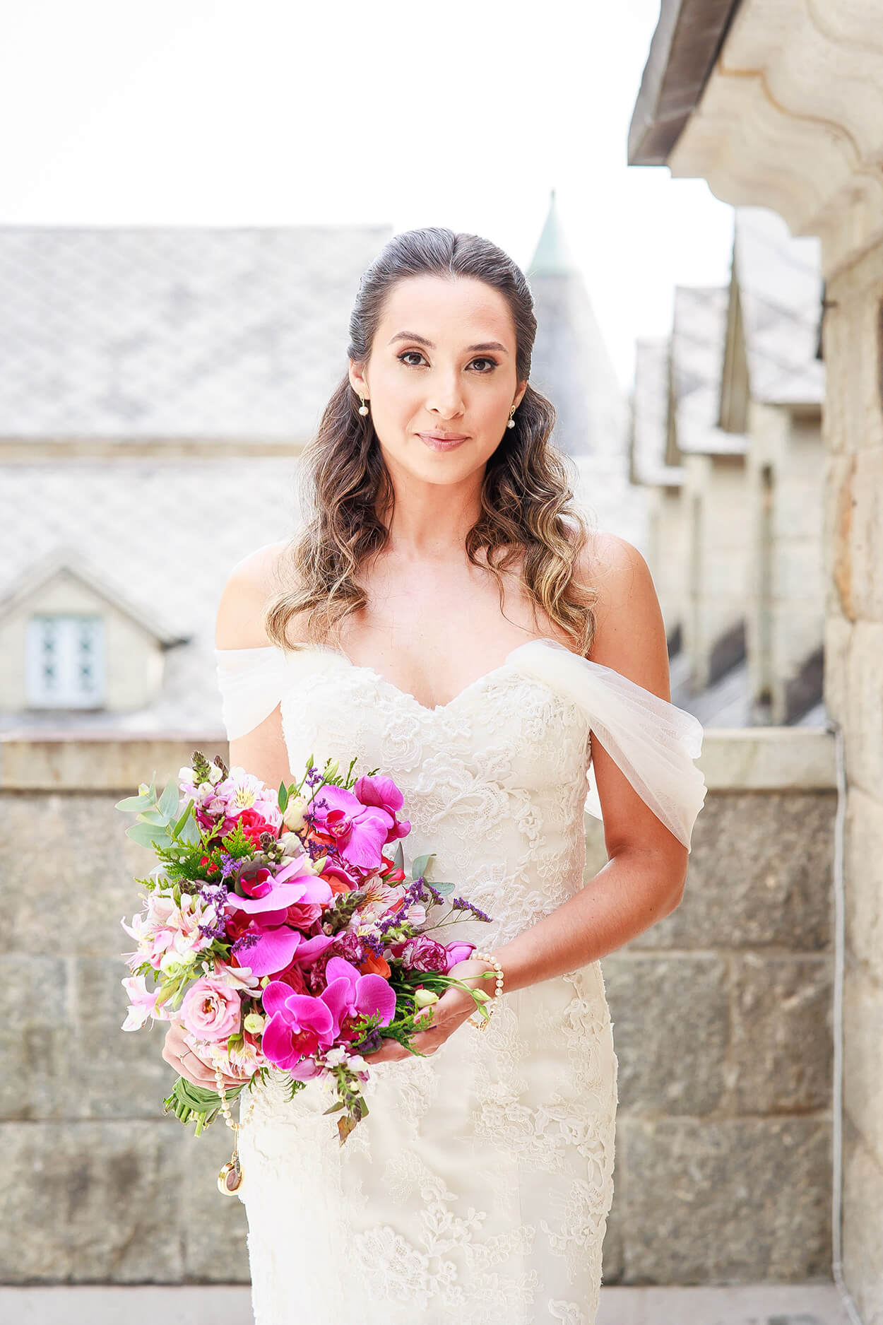 Esse casamento é o exemplo perfeito de autenticidade. A celebração ocorreu à luz do dia em um castelo carioca, porém, o estilo clássico não é seguida à risca. Por isso, nos surpreendemos ao ver os detalhes vibrantes, românticos e até rústicos.