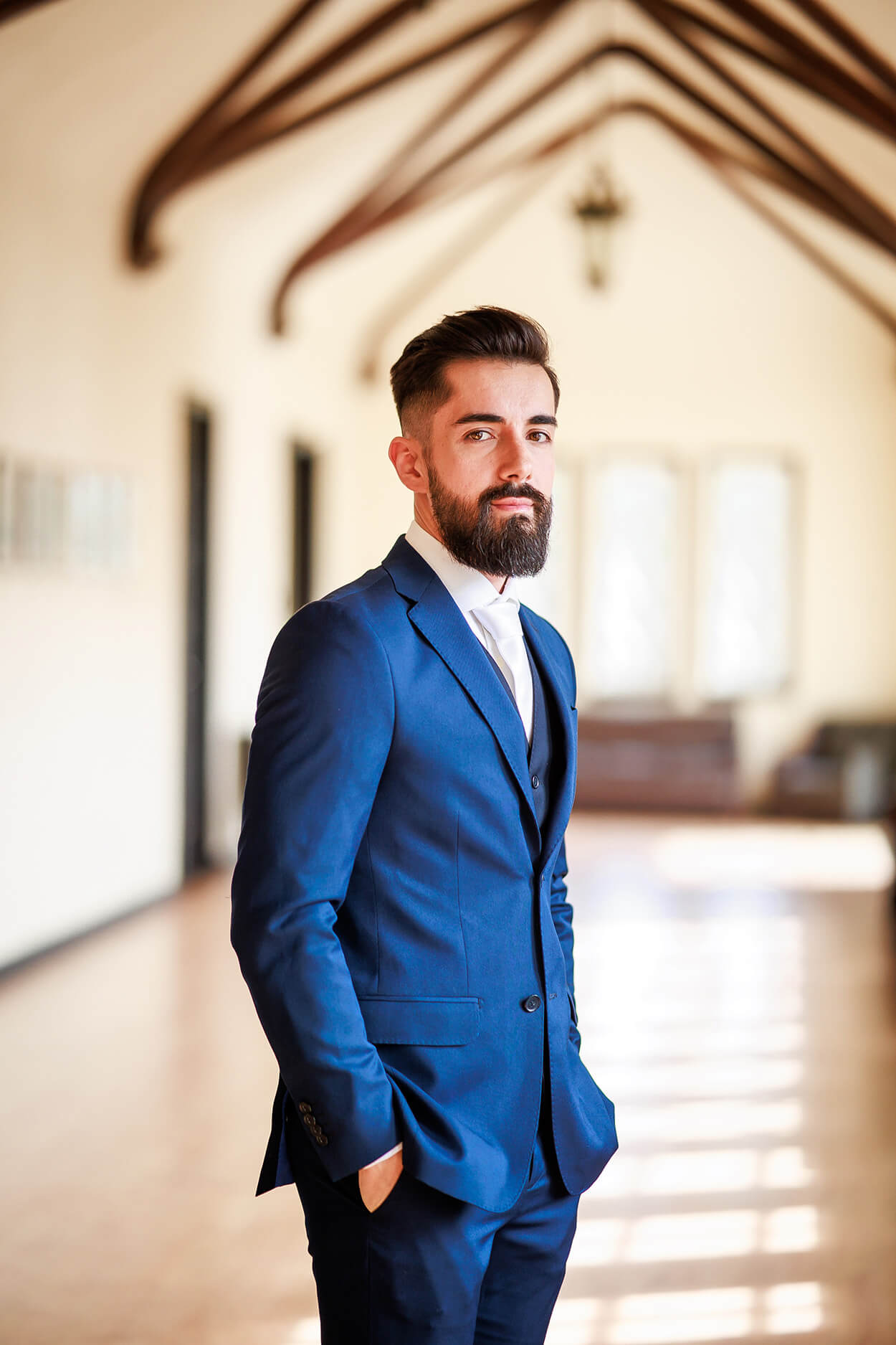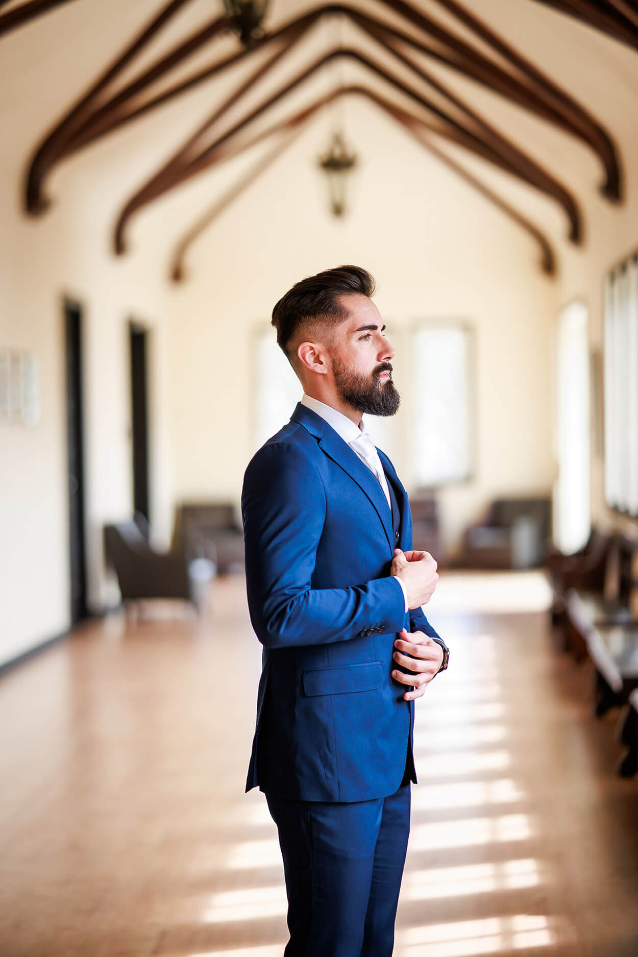 Você já sabe que o terno azul está em alta, mas tem um detalhe que faz toda a diferença: a gravata. Enquanto o noivo aposta em um visual mais formal com um nó tipo windsor, o pai e o padrinho ficam com um modelo super slim com acabamento acetinado.