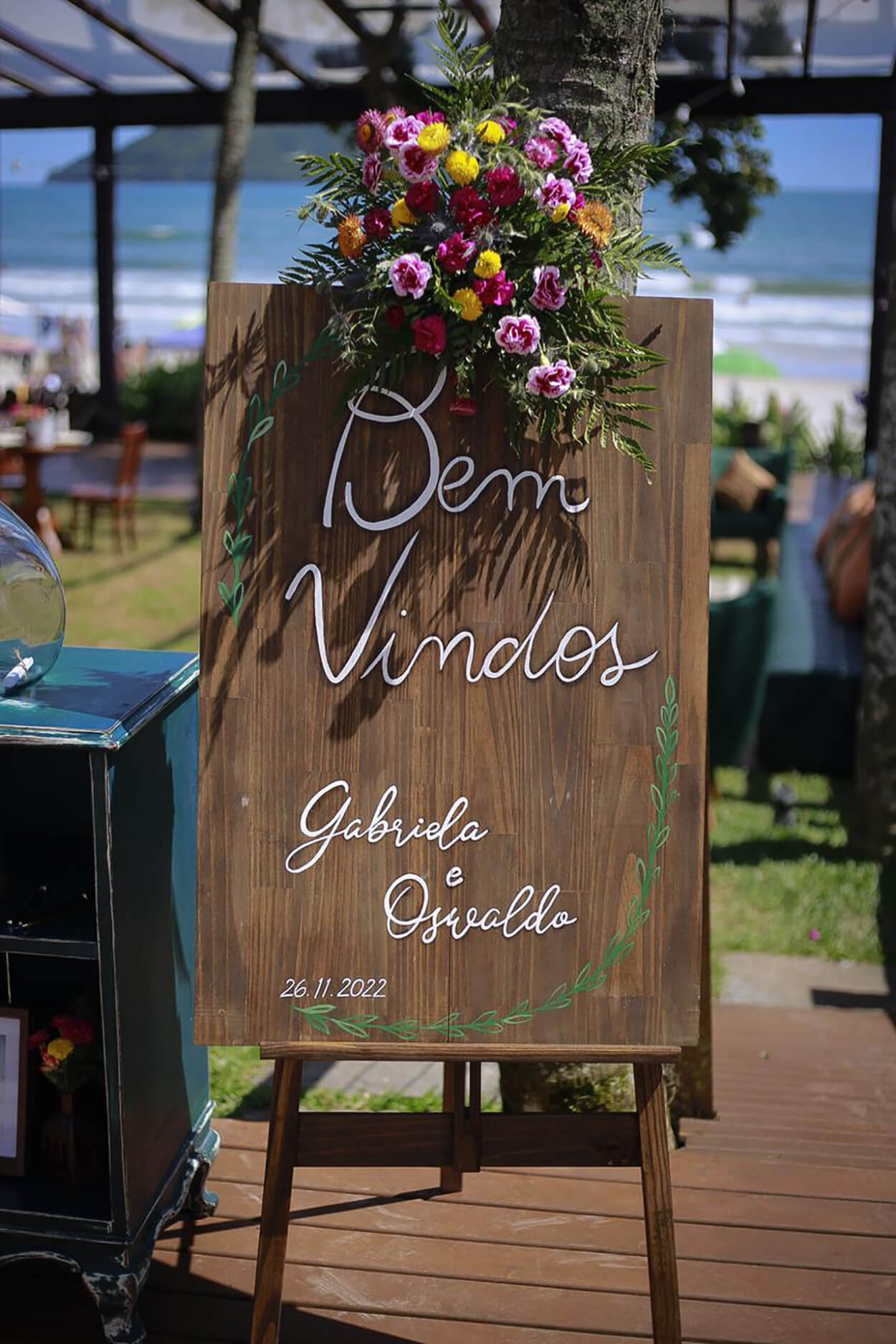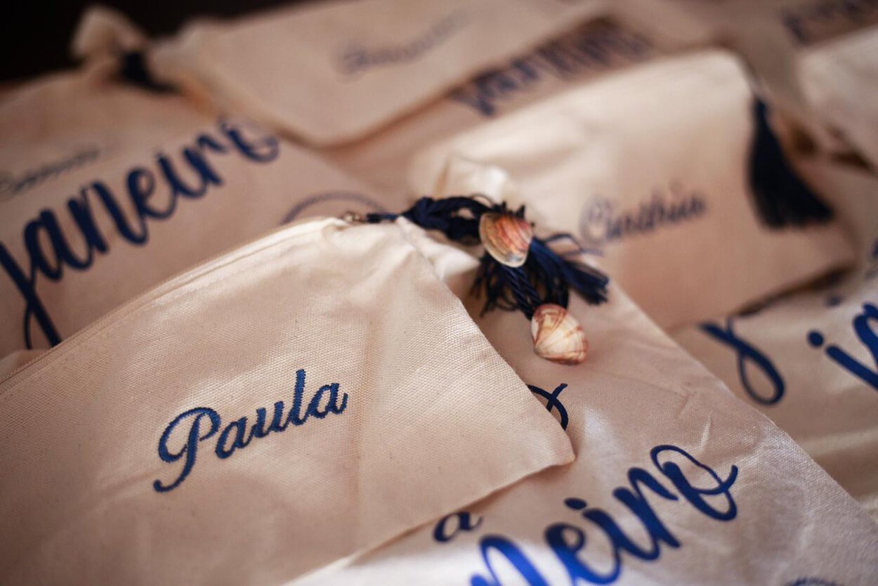 A mãe da noiva participou dos bastidores produzindo gifts e detalhes pra lá de especiais. Ela fez um a um os saquinhos dos brownies, pintou o letreiro “bem-vindos” da entrada, fez todas as caixas de padrinhos e os kits toilettes. Não tem coisa melhor quando a nossa família abraça os preparativos, não é mesmo?