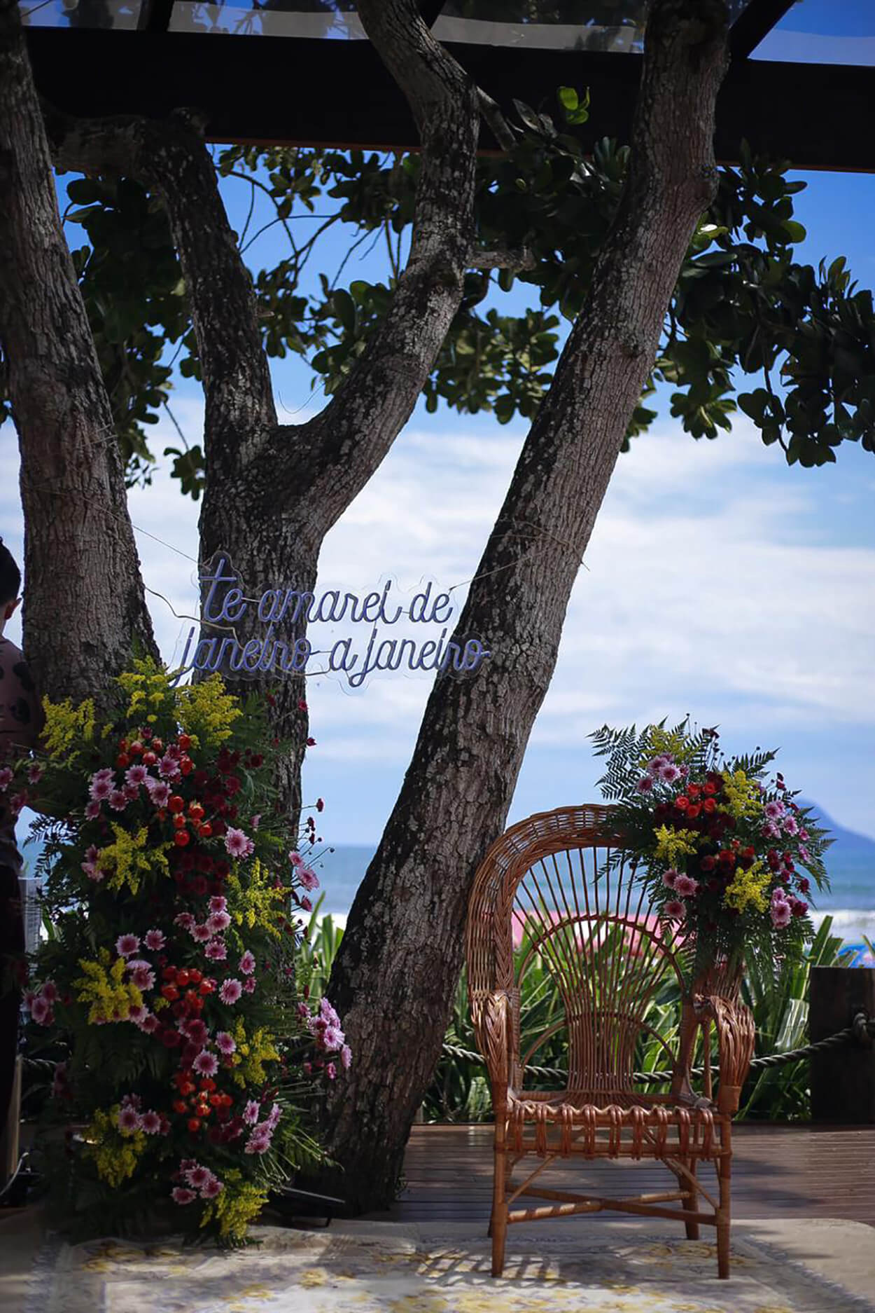 O noivo mandou entregar flores junto com um cartão para a mãe e para sogra. Esses pequenos gestos fazem toda a diferença! E até os familiares que já não estão mais aqui ou não puderam comparecer por questões de saúde, foram homenageados com retratos. Além disso, teve uma “tradição de casamento” em que os amigos do Oswaldo se vestiram de dinossauro e deram os shots para a galera na pista.