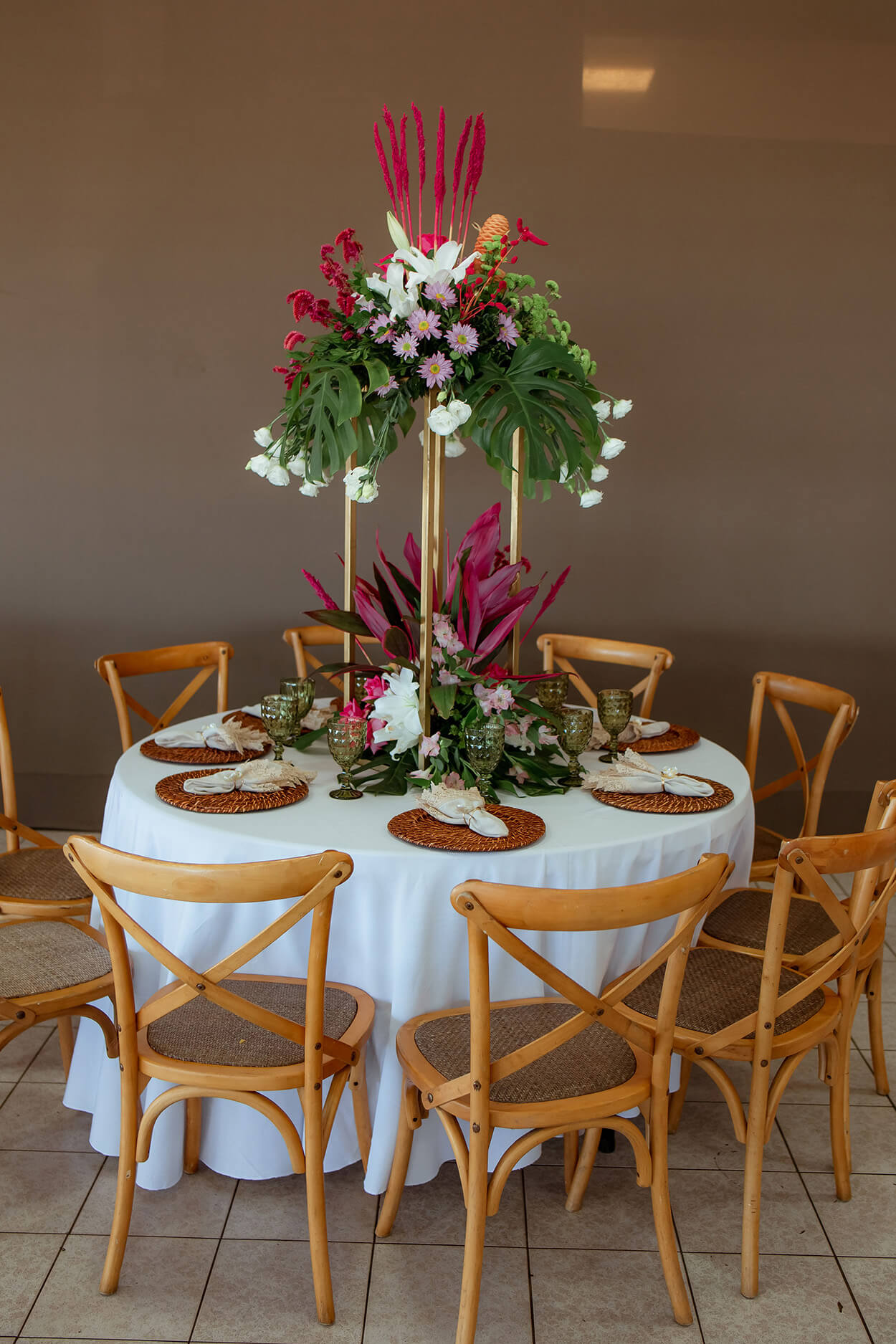 Logo mais, você pode reparar que os convidados usaram cores bem vibrantes, típicas do estilo tropical.