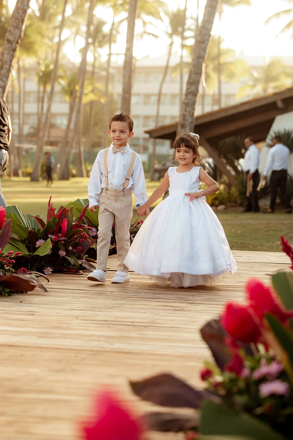Assim, o branco e o bege ficaram para as daminhas e o pajem, muito fofo!