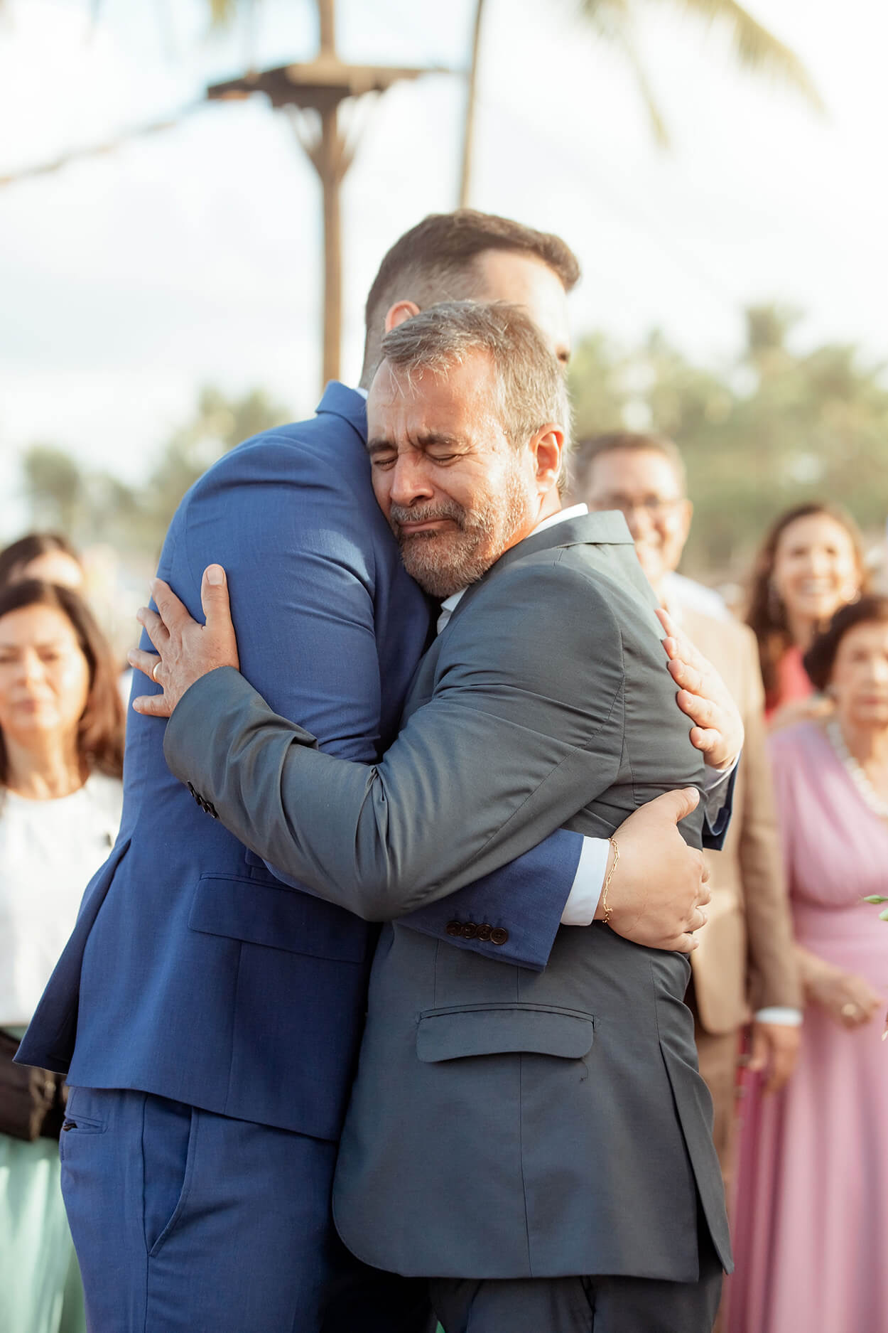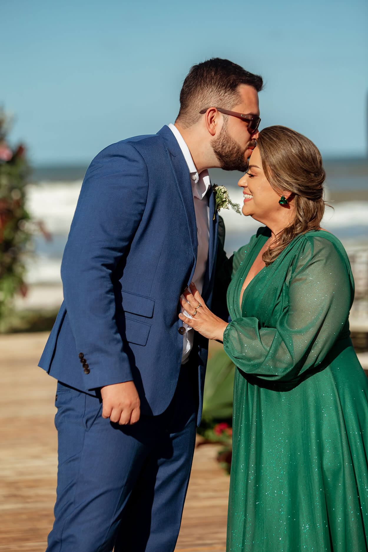 Mas os pais dos noivos optaram por cores mais sóbrias e profundas, trazendo mais elegância para o momento.