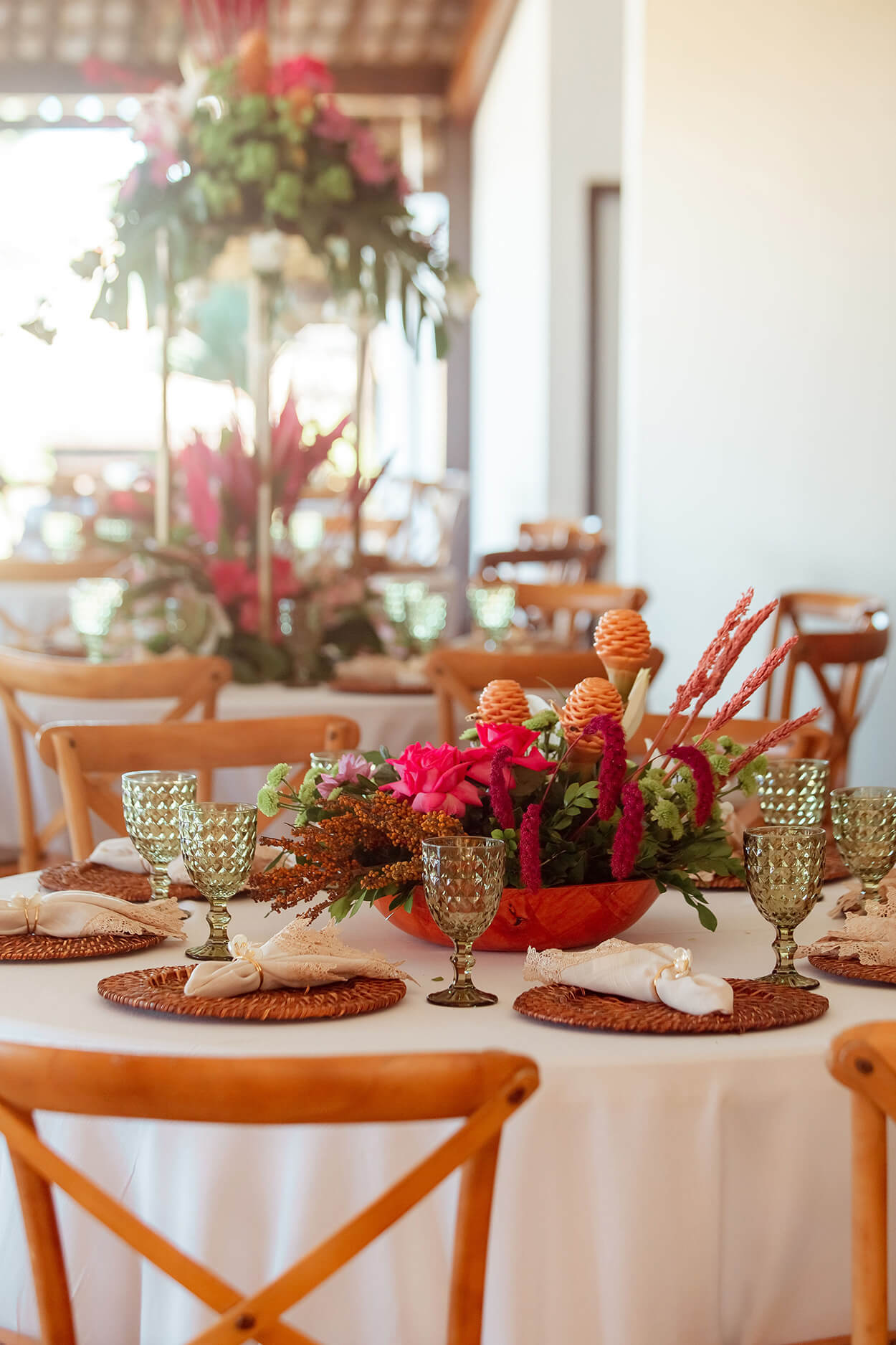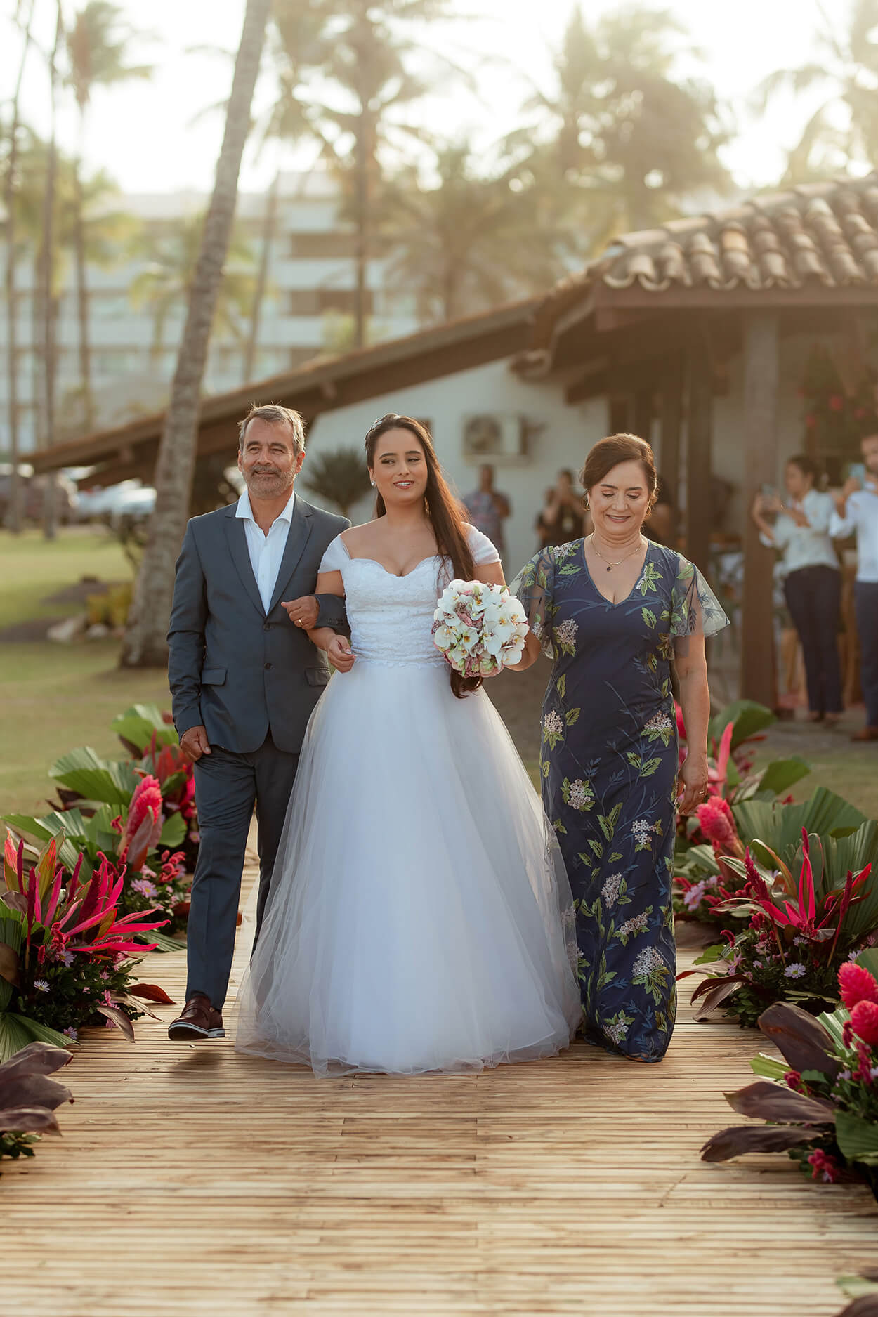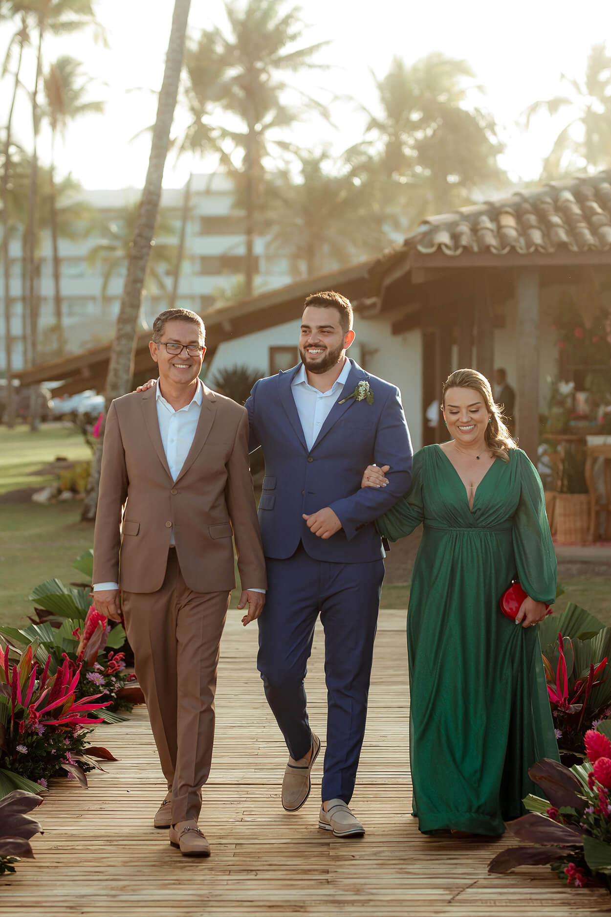 Logo mais, você pode reparar que os convidados usaram cores bem vibrantes, típicas do estilo tropical.