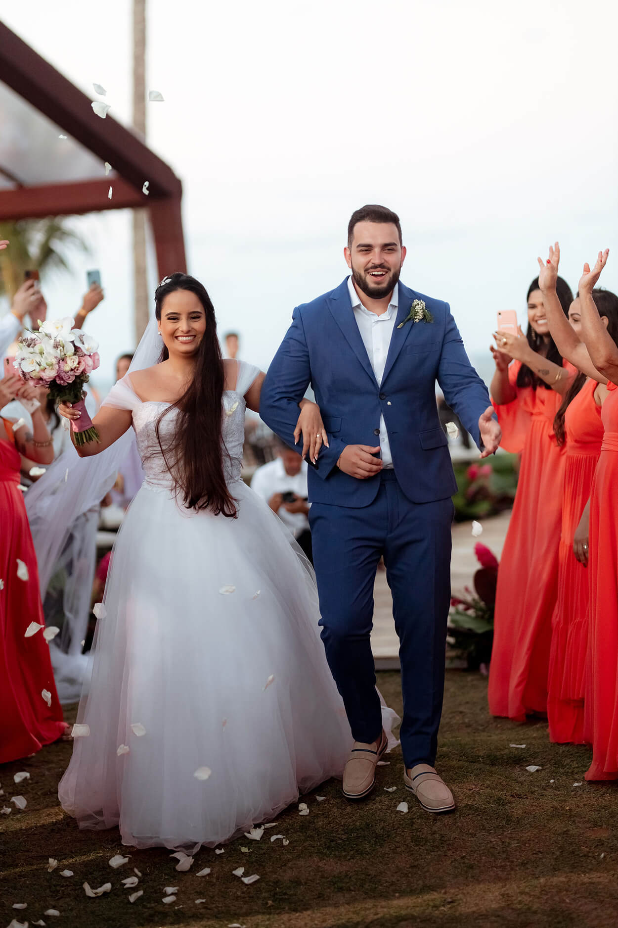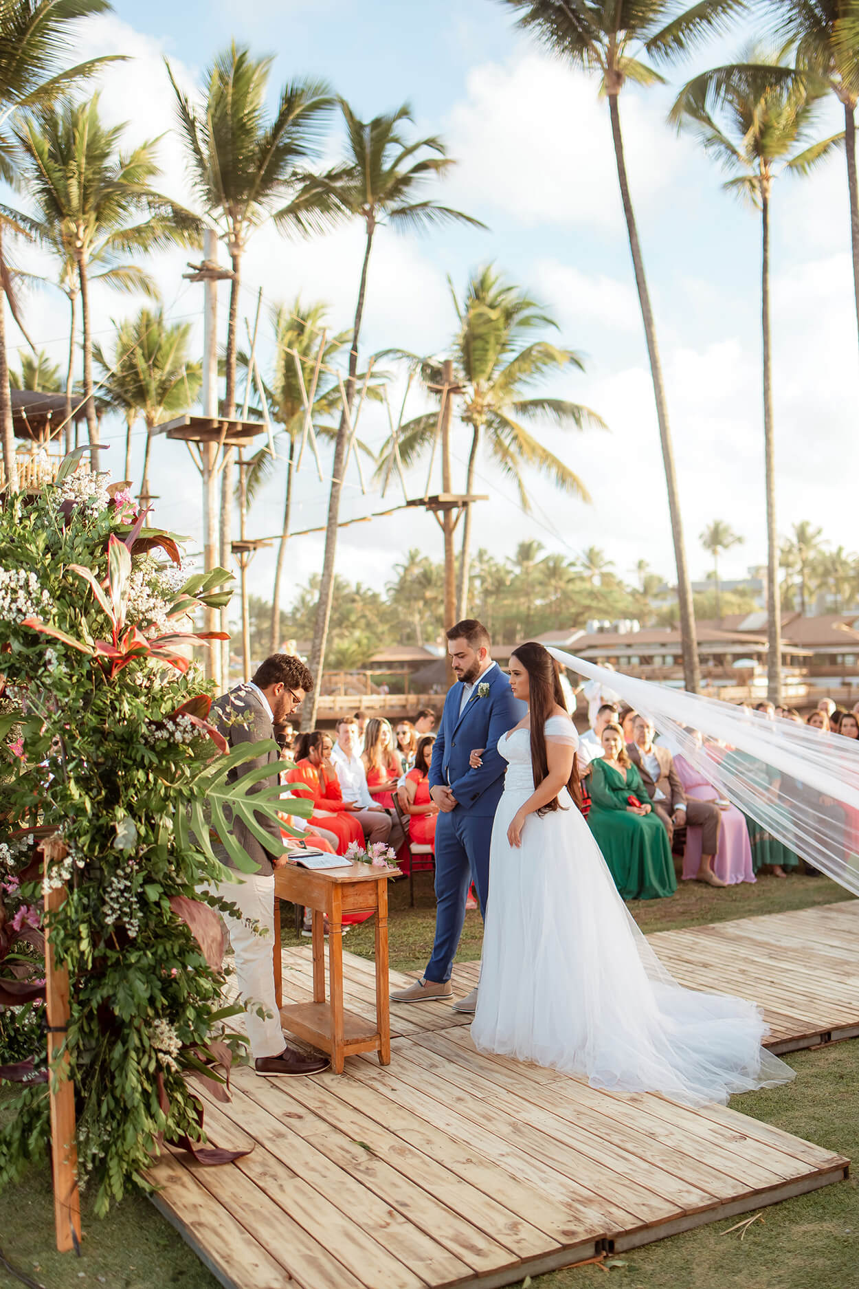 A festa foi toda planejada para ter o frescor de uma celebração tropical com uma pitada de romantismo.